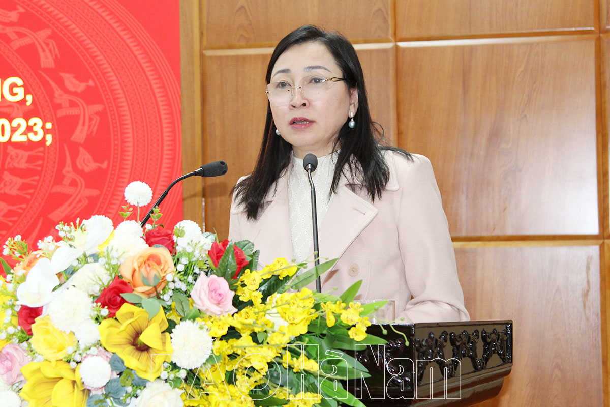 Đồng chí Đinh Thị Lụa, Phó Bí thư Thường trực Tỉnh ủy phát biểu chỉ đạo hội nghị.