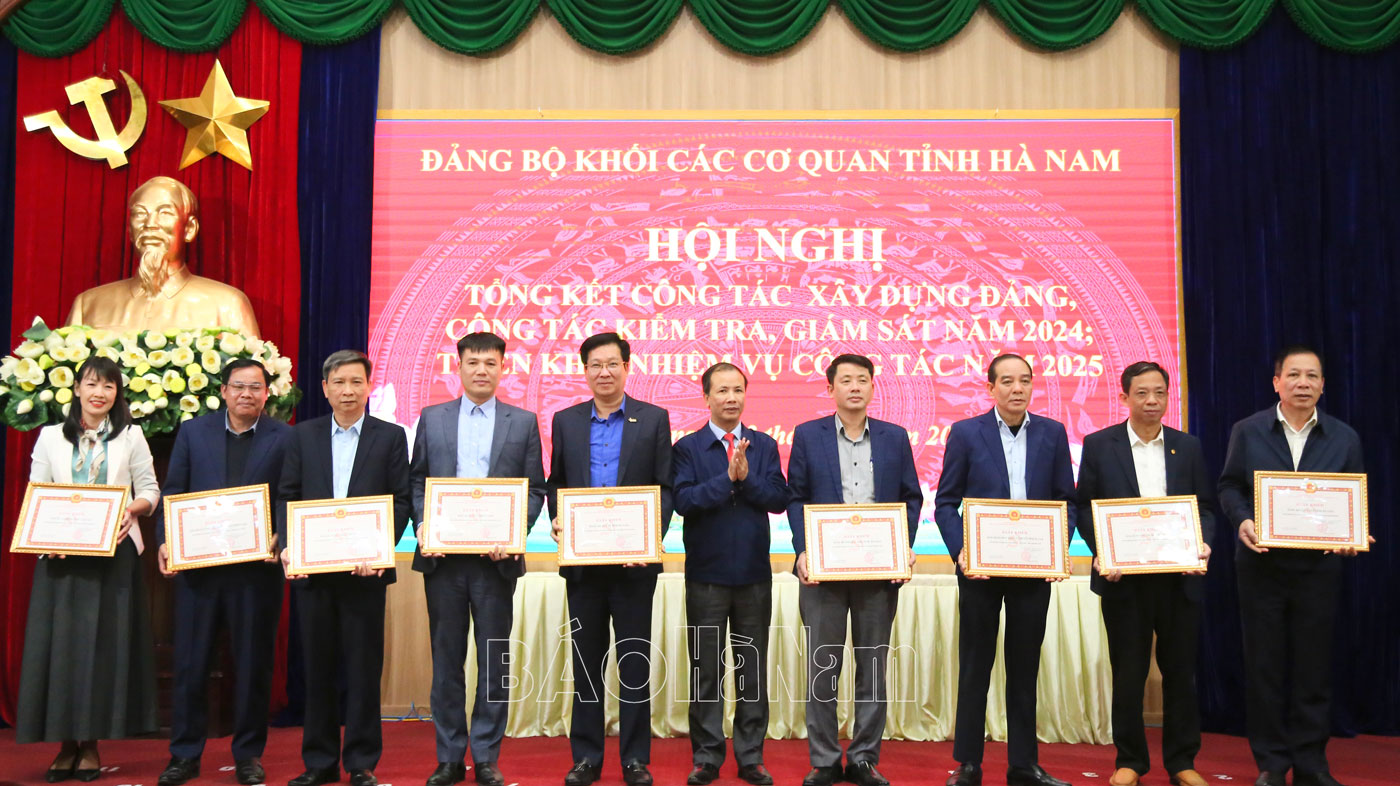 Lãnh đạo Đảng ủy Khối các cơ quan tỉnh khen thưởng cho các tập thể hoàn thành xuất sắc nhiệm vụ năm 2024.