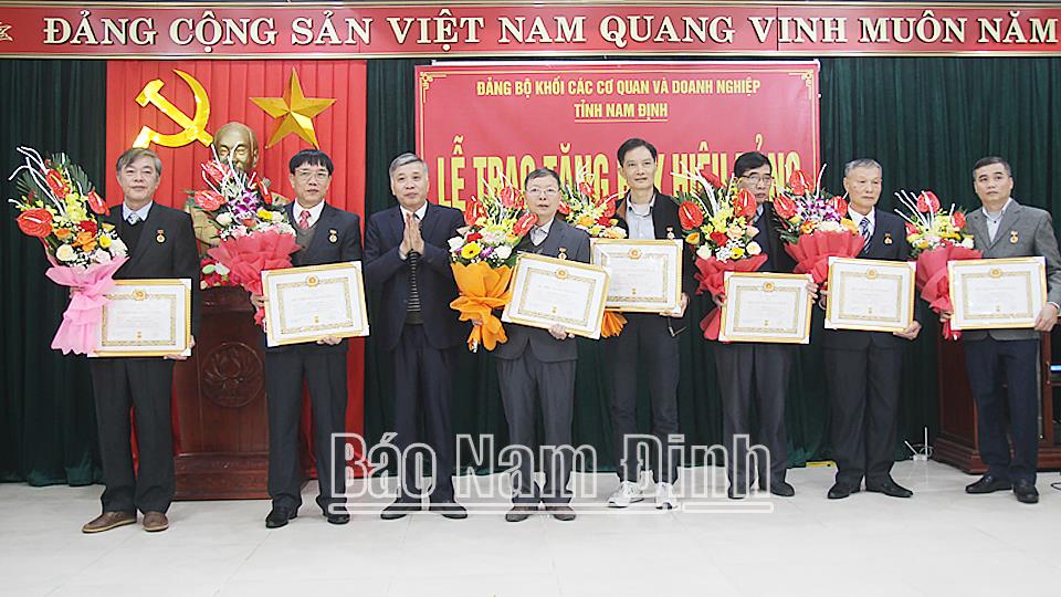 | Đồng chí Nguyễn Tài Sơn, Phó Bí thư Thường trực Đảng ủy Khối các Cơ quan và Doanh nghiệp tỉnh trao tặng Huy hiệu 30 năm tuổi Đảng cho các đảng viên. |