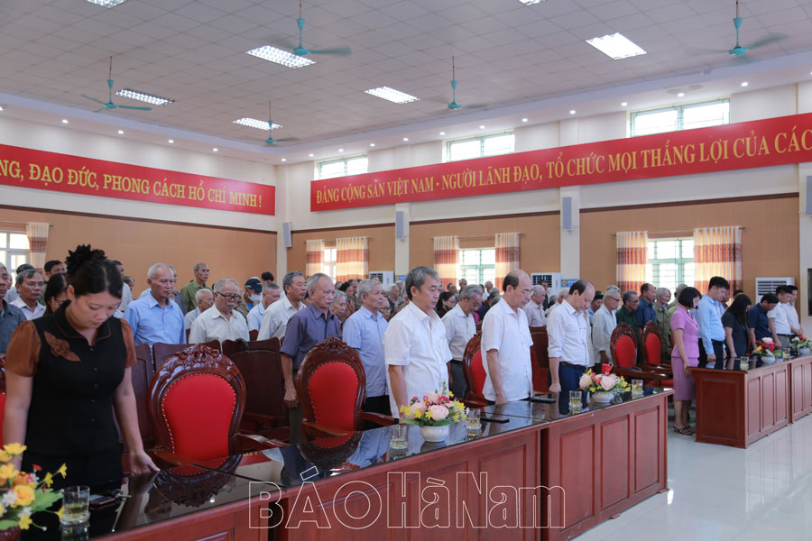 Trước khi diễn ra buổi lễ các lãnh đạo, cựu chiến binh, gia đình chính sách và nhân dân dành một phút mặc niệm để tỏ lòng tiếc thương, tưởng nhớ Tổng Bí thư Nguyễn Phú Trọng.