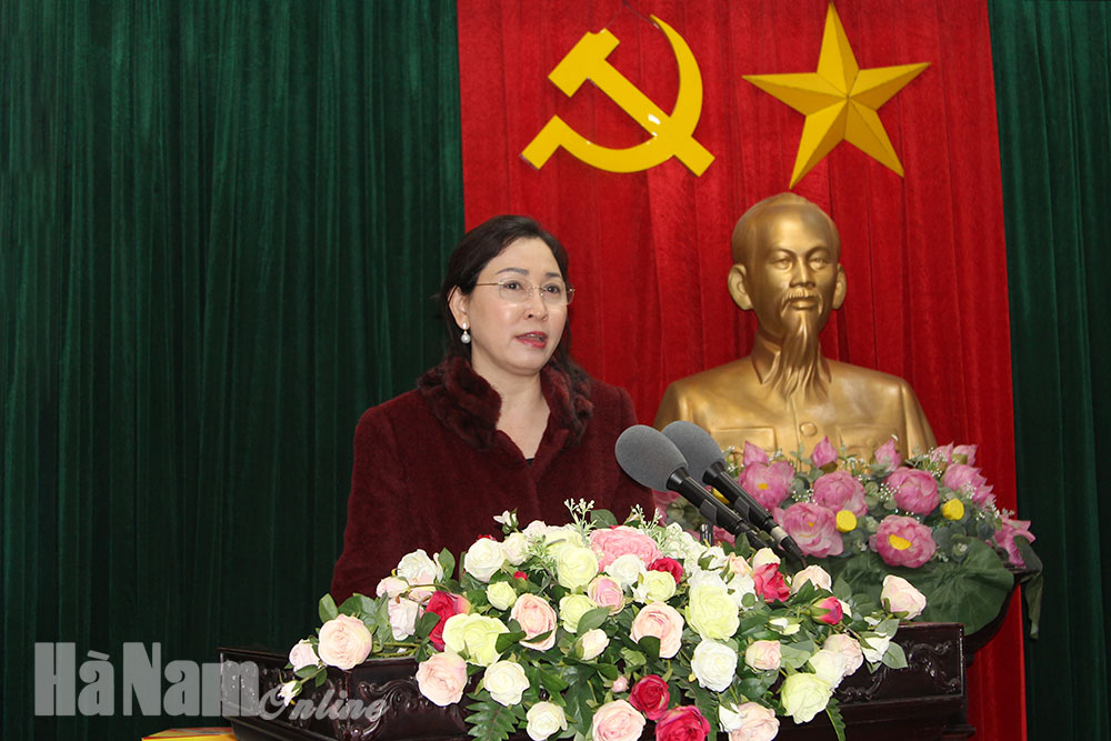 Đồng chí Đinh Thị Lụa, Phó Bí thư Thường trực Tỉnh ủy phát biểu chỉ đạo tại hội nghị.