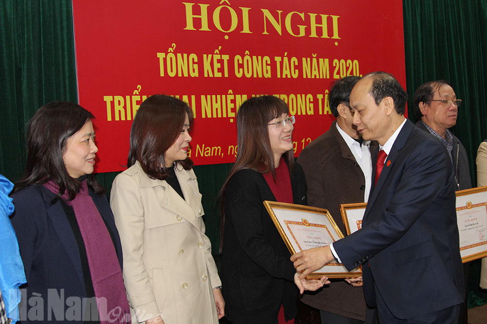 Đại diện lãnh đạo Đảng ủy Khối Doanh nghiệp tỉnh trao Giấy khen cho các tập thể, cá nhân hoàn thành xuất sắc nhiệm vụ năm 2020.