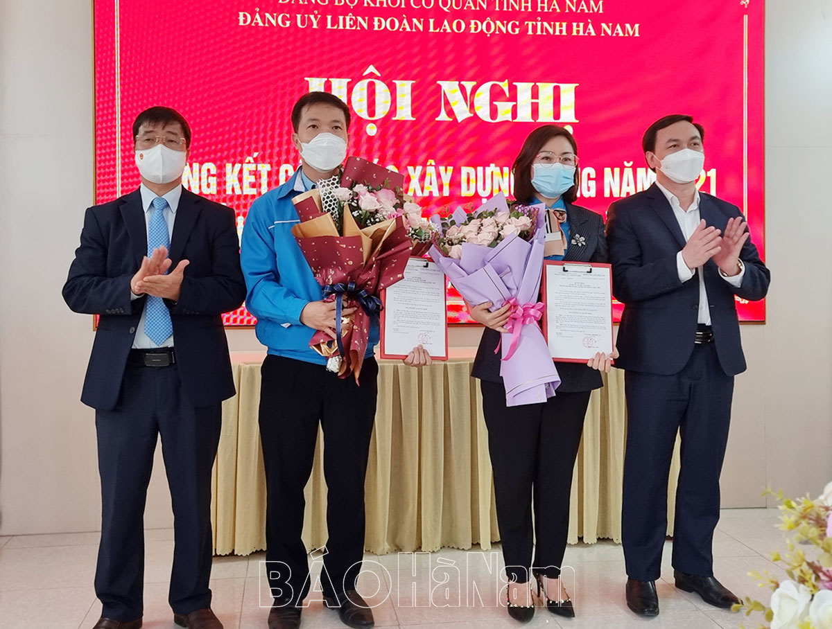Nhân dịp này, Đảng ủy LĐLĐ tỉnh đã tặng giấy khen cho 1 chi bộ và 8 đảng viên hoàn thành xuất sắc nhiệm vụ năm 2021. Đồng thời, chỉ định 2 đồng chí tham gia Ban chấp hành Đảng bộ LĐLĐ tỉnh nhiệm kỳ 2020-2025.