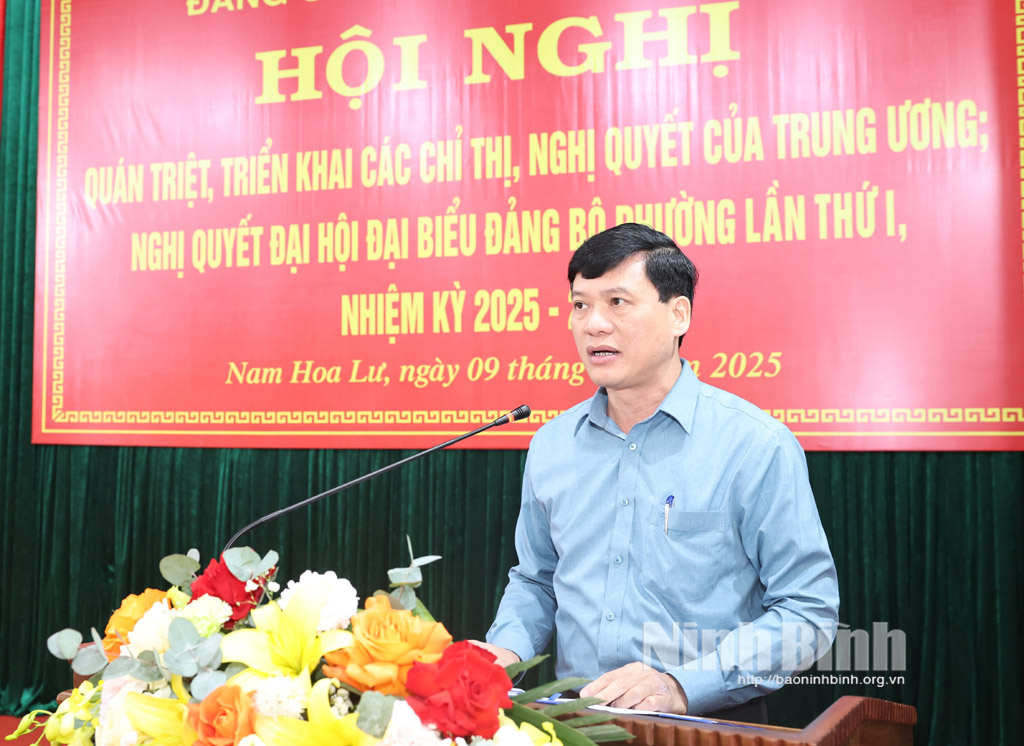 Đảng ủy phường Nam Hoa Lư quán triệt, triển khai các Chỉ thị, Nghị quyết của Trung ương, Nghị quyết Đại hội đại biểu Đảng bộ phường nhiệm kỳ 2025-2030