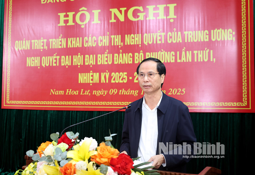 Ngày 9/12, Ban Thường vụ Đảng ủy phường Nam Hoa Lư tổ chức hội nghị quán triệt, triển khai các Chỉ thị, Nghị quyết của Trung ương, Nghị quyết Đại hội đại biểu Đảng bộ phường, nhiệm kỳ 2025-2030. Đồng chí Bùi Thiện Thi, Tỉnh ủy viên, Bí thư Đảng ủy, Chủ tịch HĐND phường chủ trì hội nghị.