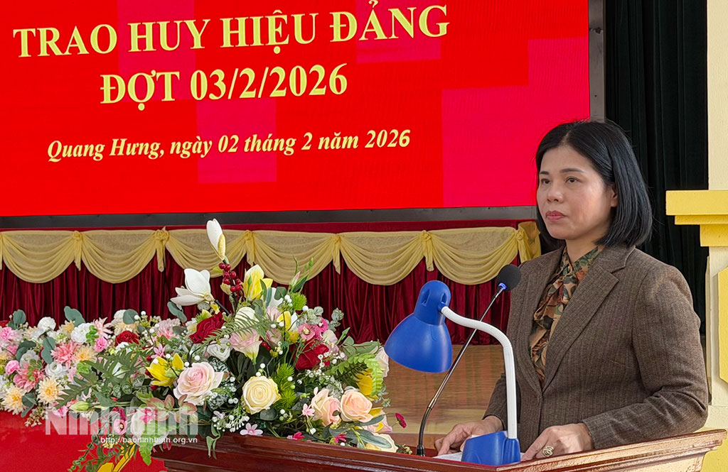 Nhân kỷ niệm 96 năm Ngày thành lập Đảng Cộng sản Việt Nam (3/2/1930-3/2/2026), chiều 2/2, Đảng ủy phường Tây Hoa Lư, xã Quang Hưng tổ chức Lễ trao tặng Huy hiệu Đảng đợt 3/2/2026 cho các đảng viên từ 30 đến 65 năm tuổi Đảng.