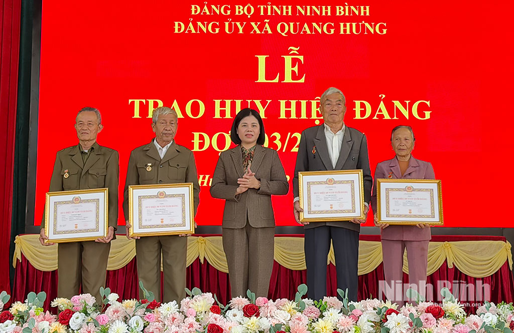 Đảng ủy phường Tây Hoa Lư, xã Quang Hưng trao tặng Huy hiệu Đảng đợt 3/2