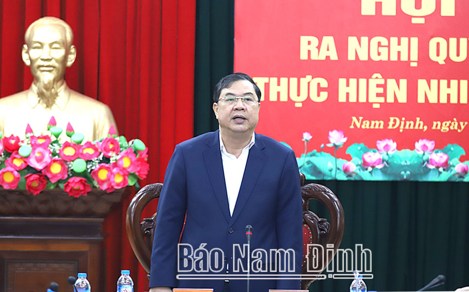 | Đồng chí Bí thư Tỉnh ủy Phạm Gia Túc phát biểu kết luận hội nghị. |