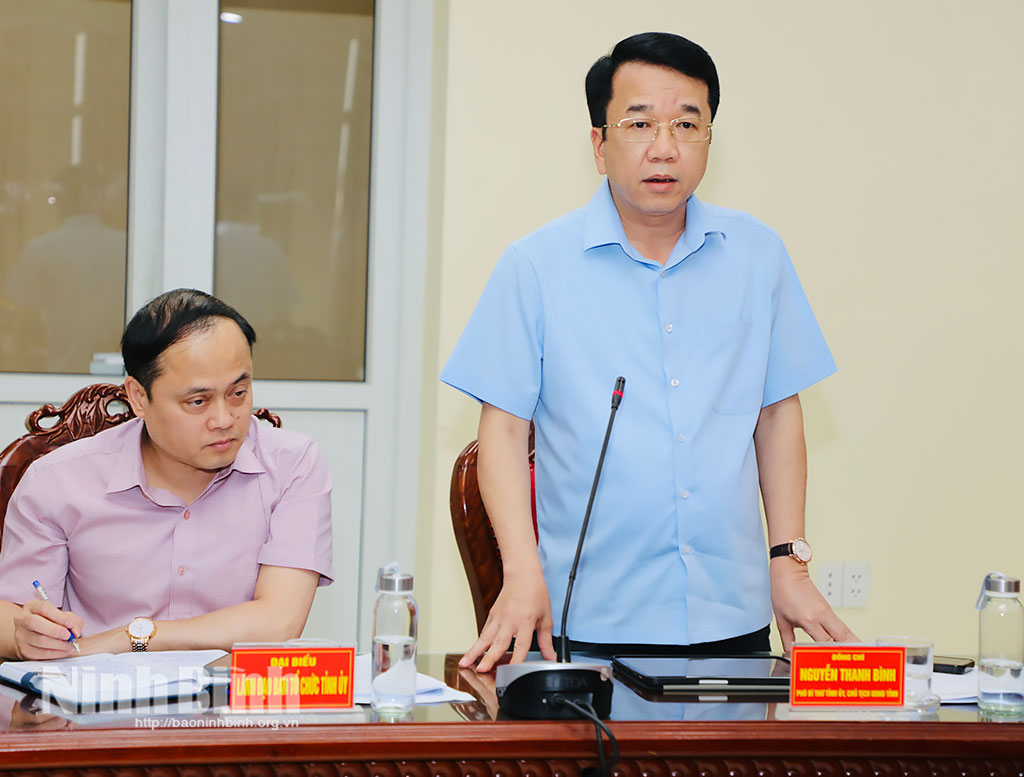 Đồng chí Phó Bí thư Tỉnh ủy, Chủ tịch UBND tỉnh Nguyễn Thanh Bình phát biểu tại hội nghị.