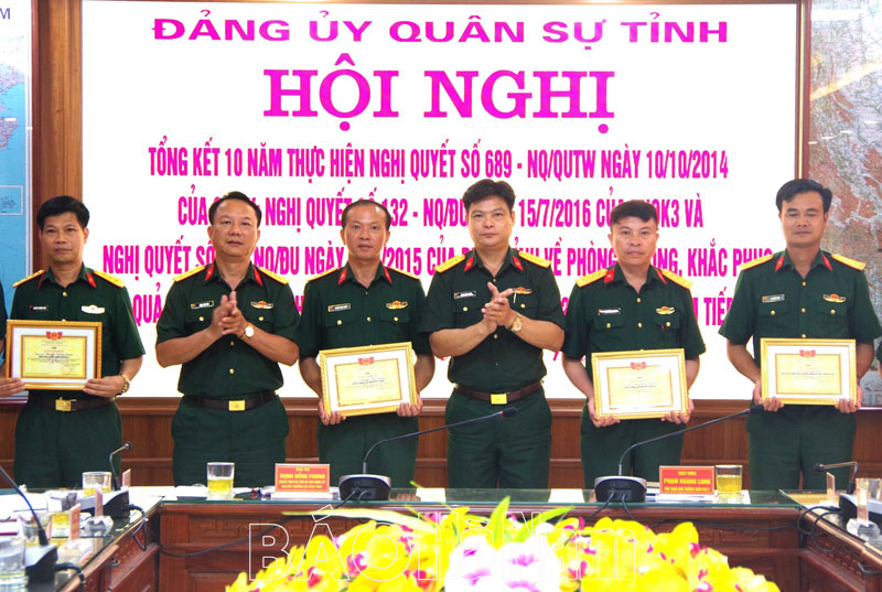 Nhân dịp này, ĐUQS tỉnh tặng Giấy khen cho 12 tập thể, 18 cá nhân có thành tích tiêu biểu trong 10 năm thực hiện Nghị quyết 689 của Quân uỷ Trung ương về phòng chống, khắc phục hậu quả thiên tai, thảm hoạ, cứu hộ - cứu nạn đến năm 2020 và những năm tiếp theo.