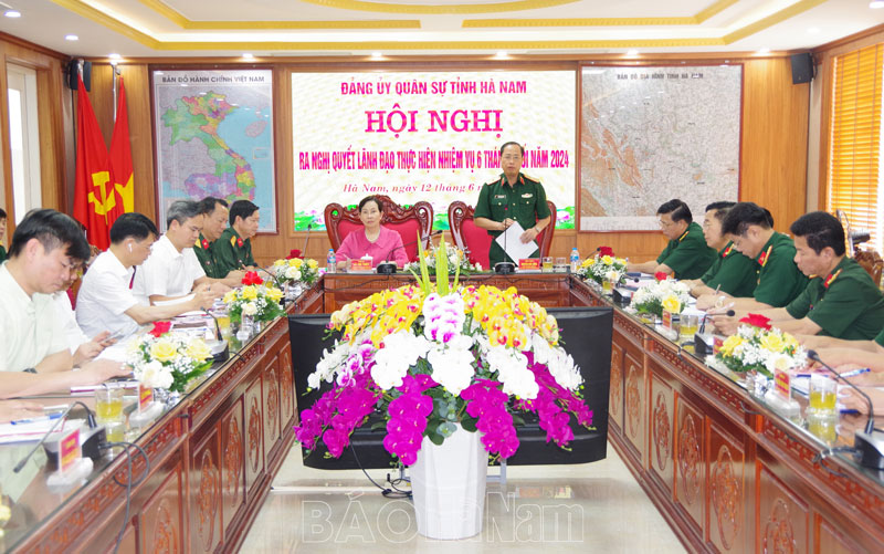 Về nhiệm vụ 6 tháng cuối năm, đồng chí Bí thư Tỉnh ủy đề nghị: các cơ quan, đơn vị LLVT tỉnh khắc phục những hạn chế; triển khai các giải pháp lãnh đạo thực hiện tốt nhiệm vụ chính trị, xây dựng đơn vị vững mạnh toàn diện “mẫu mực, tiêu biểu”, xây dựng đảng bộ trong sạch vững mạnh. Trong đó, tham mưu giúp Tỉnh uỷ, UBND tỉnh chỉ đạo huyện Lý Nhân tổ chức thành công cuộc diễn tập KVPT huyện; giải quyết dứt điểm vướng mắc, đẩy nhanh tiến độ xây dựng công trình quân sự trong KVPT cấp tỉnh, cấp huyện đã được phê duyệt; ban hành đề án xây dựng trụ sở ban CHQS cấp xã; tổ chức hoạt động chào mừng kỷ niệm 80 năm Ngày thành lập Quân đội nhân dân Việt Nam, 35 năm Ngày hội Quốc phòng toàn dân; tổ chức thành công Đại hội thi đua Quyết thắng LLVT tỉnh giai đoạn 2019-2024.