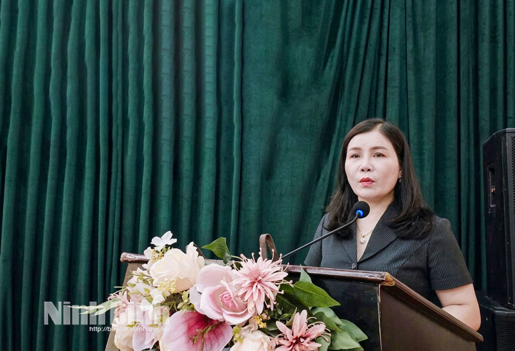 Đồng chí Nguyễn Thị Thu Thủy, Tỉnh ủy viên, Phó Bí thư chyên trách Đảng ủy UBND tỉnh phát biểu khai giảng lớp bồi dưỡng nhận thức về Đảng.