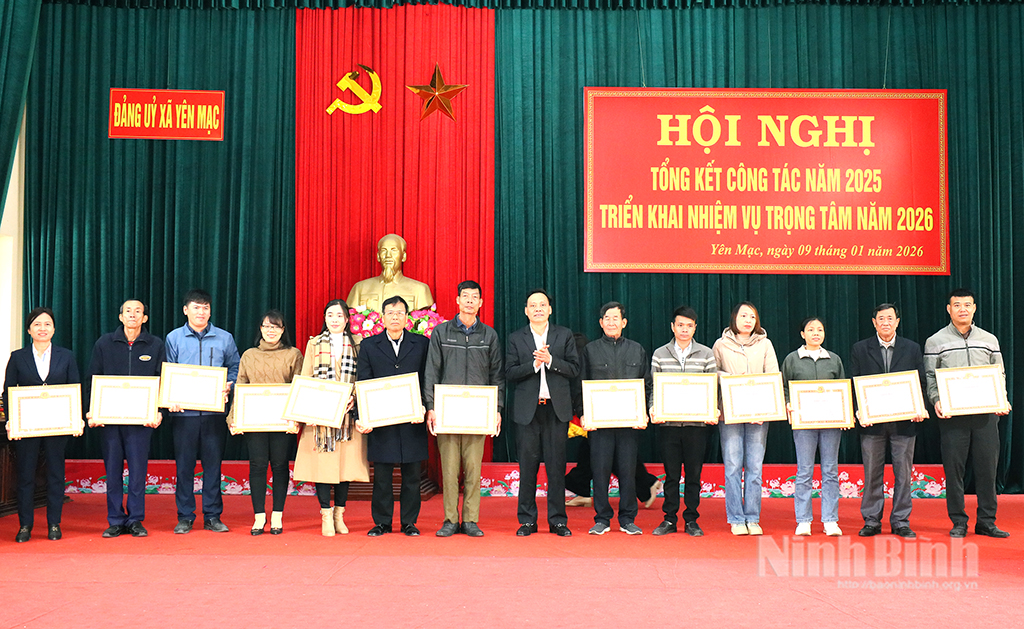 Lãnh đạo xã Yên Mạc trao Giấy khen cho các cá nhân có thành tích xuất sắc trong công tác xây dựng Đảng năm 2025.