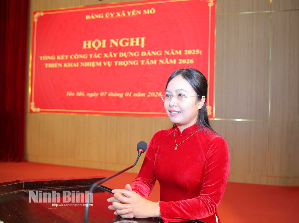 Năm 2025, trong bối cảnh nhiều khó khăn thách thức và yêu cầu cấp bách về sắp xếp bộ máy sau sáp nhập, Đảng bộ xã Yên Mô đã nêu cao tinh thần "đoàn kết, trách nhiệm, đổi mới", đạt được những kết quả toàn diện trên mọi lĩnh vực. Điểm nhấn nổi bật nhất trong công tác xây dựng Đảng là việc tổ chức thành công Đại hội đại biểu Đảng bộ xã lần thứ I, nhiệm kỳ 2025-2030 và xã đã tập trung kiện toàn tổ chức bộ máy, ổn định địa bàn ngay sau khi có quyết định thành lập xã mới. Công tác cán bộ được thực hiện chặt chẽ, đúng quy trình. Đặc biệt, xã đã kết nạp được 84 đảng viên mới, đạt 114% kế hoạch đề ra. Chuyển đổi số trong hoạt động công tác Đảng cũng được chú trọng với tỷ lệ cập nhật phần mềm Đảng viên 4.0 đạt tới 99,8%.