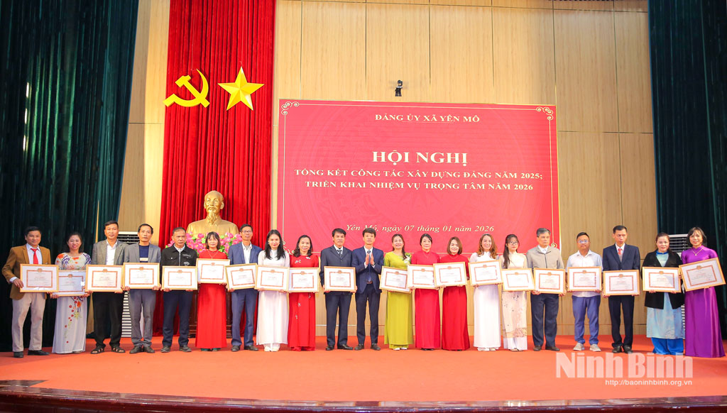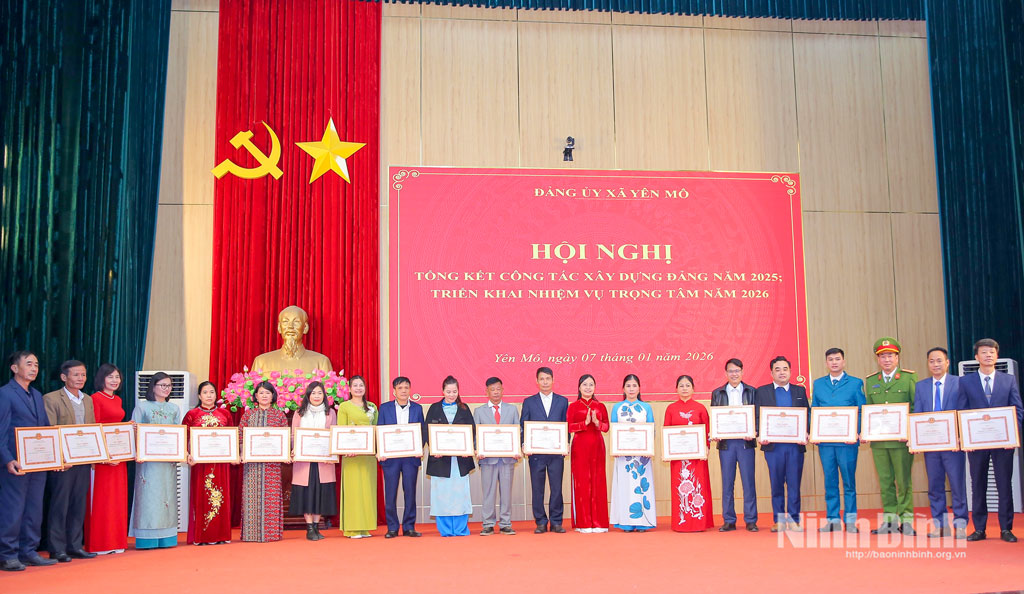 Tại hội nghị, Đảng ủy xã Yên Mô đã khen thưởng các tập thể và cá nhân có thành tích trong công tác xây dựng Đảng năm 2025.