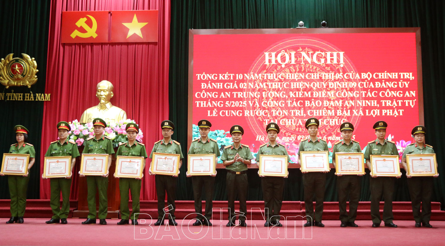 Nhân dịp này, nhiều tập thể, cá nhân có thành tích xuất sắc trong 10 năm thực hiện Chỉ thị 05 của Bộ Chính trị và bảo đảm ANTT tại Lễ cung rước, tôn trí, chiêm bái xá lợi Đức Phật và Đại lễ Phật đản tại chùa Tam Chúc được Chủ tịch UBND tỉnh và Giám đốc Công an tỉnh biểu dương, khen thưởng.