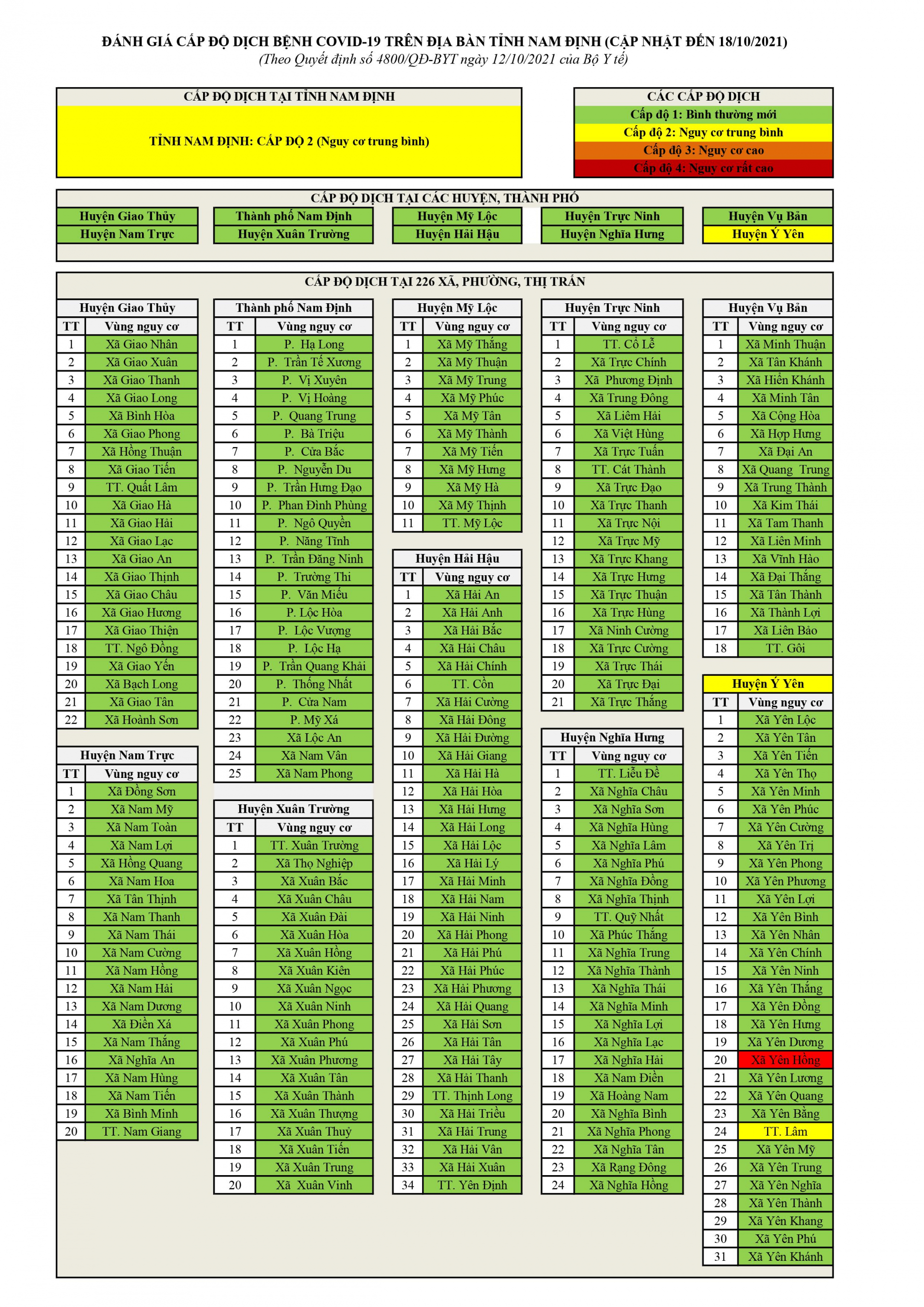 Đánh giá cấp độ dịch bệnh COVID-19 trên địa bàn tỉnh Nam Định (Cập nhật đến 18/10/2021)