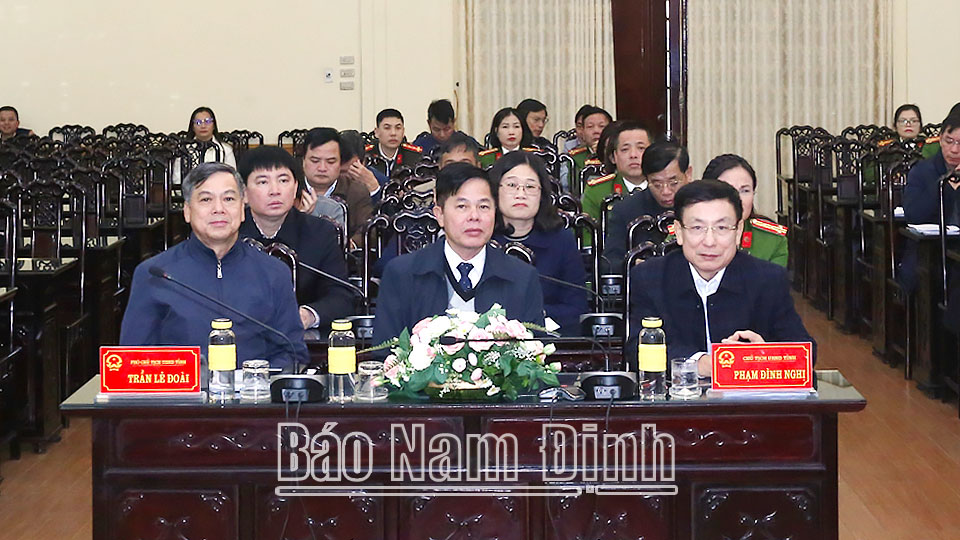 Dự hội nghị tại điểm cầu tỉnh Nam Định có các đồng chí: Phạm Đình Nghị, Phó Bí thư Tỉnh ủy, Chủ tịch UBND tỉnh, Tổ trưởng Tổ công tác Đề án 06 tỉnh; Mai Văn Quyết, Ủy viên Ban TVTU, Giám đốc Sở KH và ĐT; Đại tá Trần Minh Tiến, Ủy viên Ban TVTU, Giám đốc Công an tỉnh; Trần Lê Đoài, TUV, Phó Chủ tịch UBND tỉnh; lãnh đạo các sở, ngành là thành viên Tổ công tác Đề án 06 tỉnh.