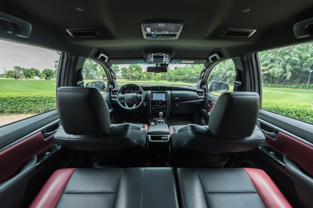 Trẻ trung nhưng Fortuner 2020 vẫn toát lên vẻ sang trọng. Phần nội thất là sự kết hợp của tông màu đen làm chủ đạo, điểm thêm các chi tiết màu đỏ trầm. Phong cách này xuyên suốt từ ba hàng ghế, táp-lô, ốp cánh cửa... cho đến chỉ khâu vô-lăng. Các vị trí ngồi tạo không gian thư thái và tiện nghi, mang đến sự hưởng thụ dù ở hàng ghế lái hay hành khách.