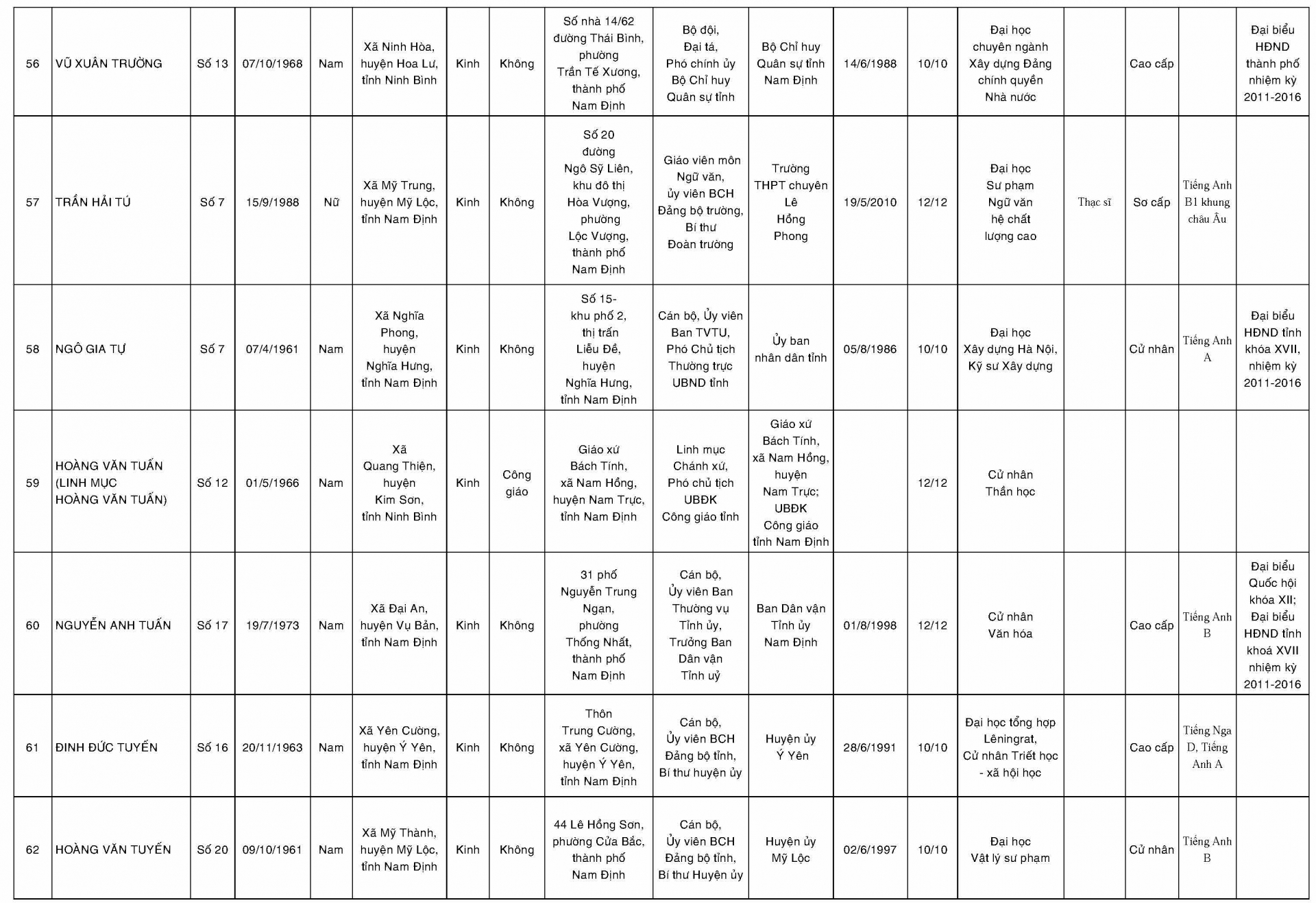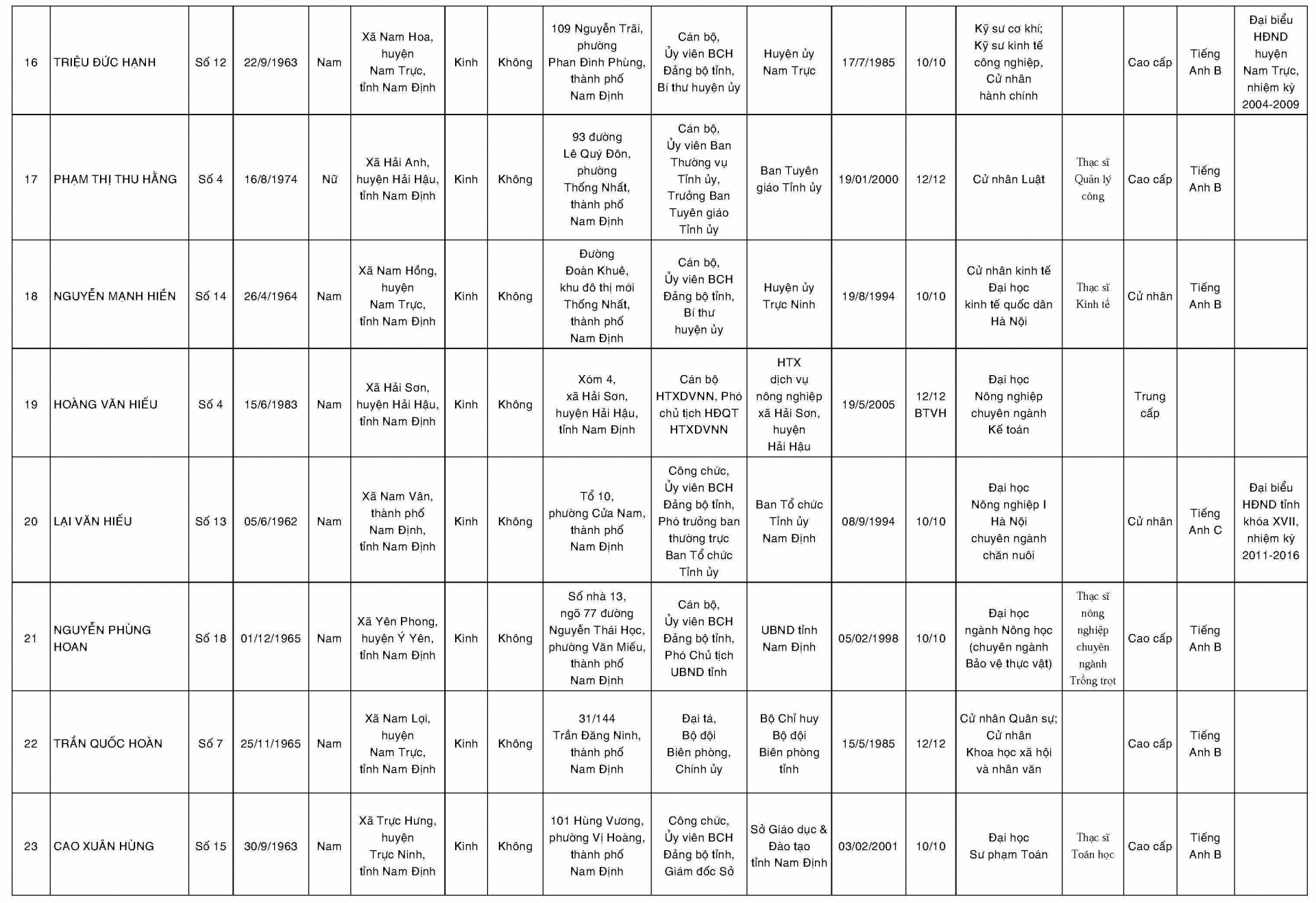 Danh sách những người trúng cử đại biểu Hội đồng nhân dân tỉnh Nam Định khóa XVIII nhiệm kỳ 2016-2021