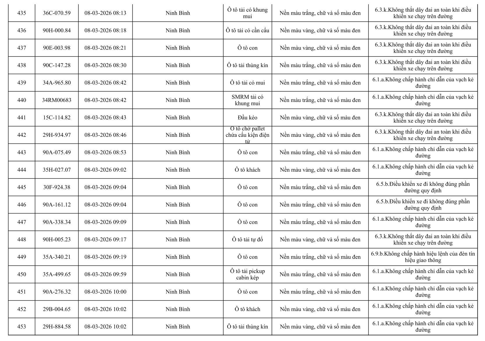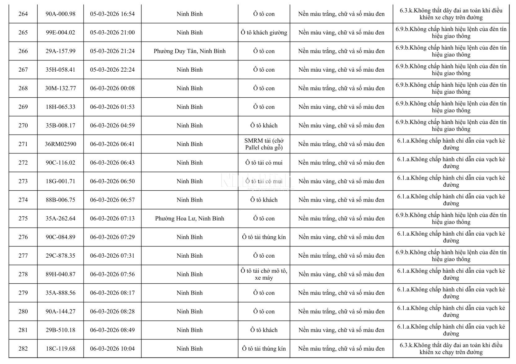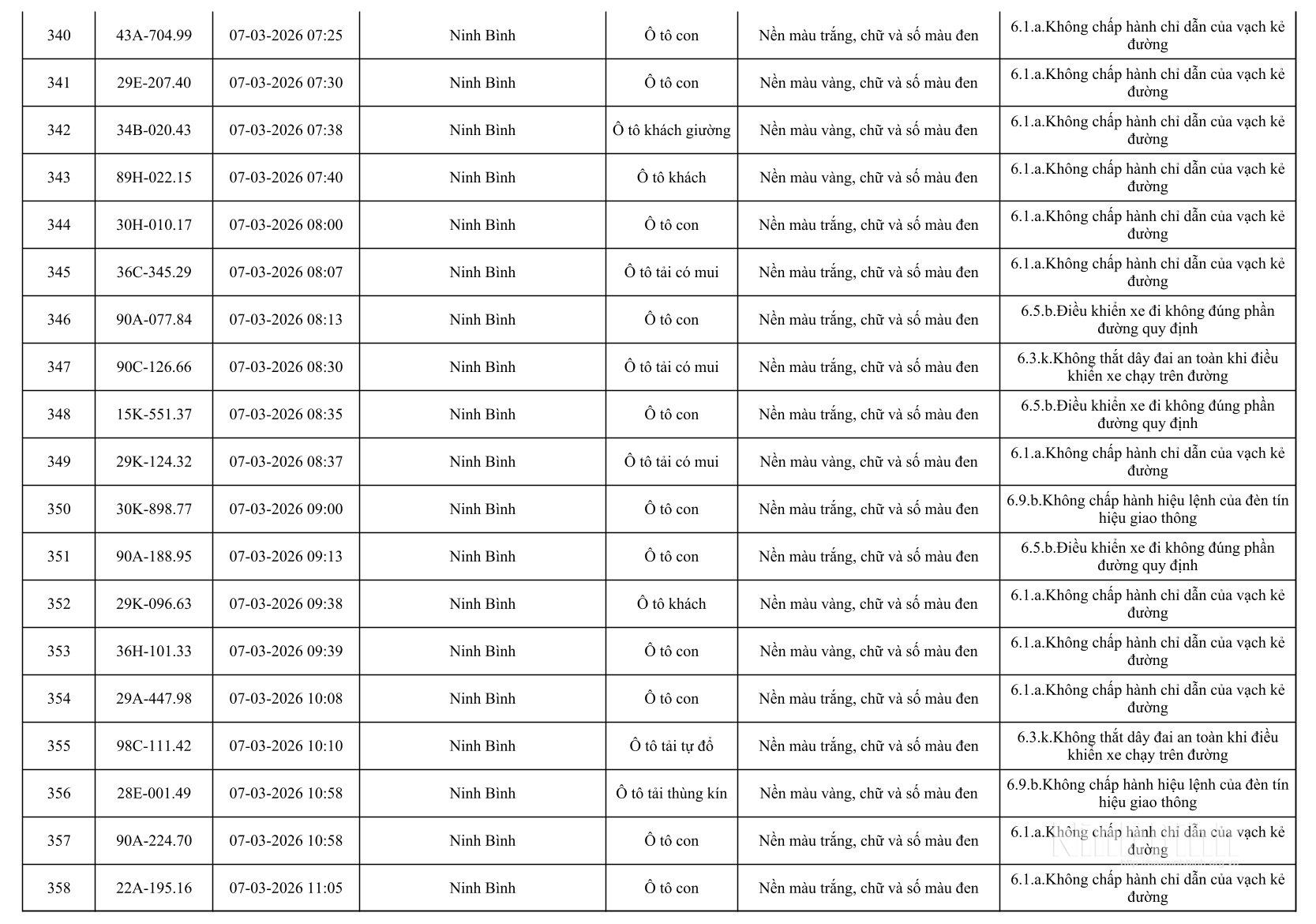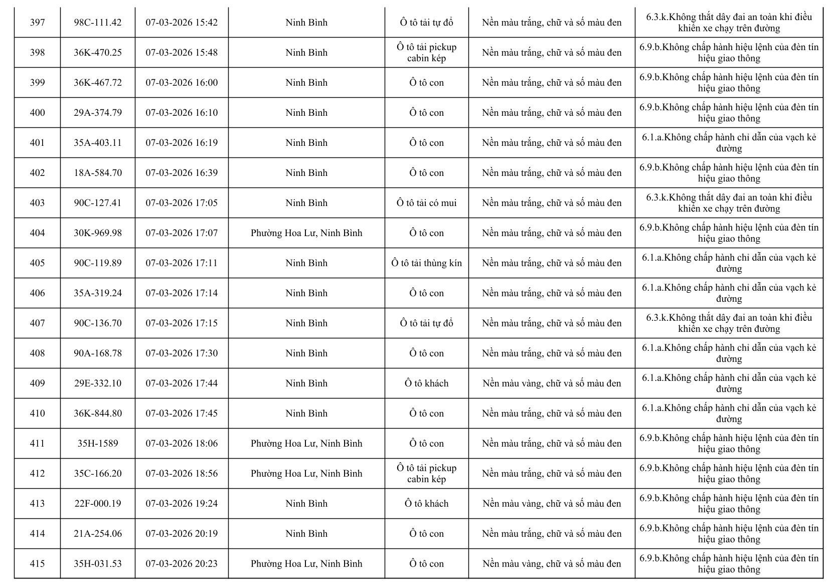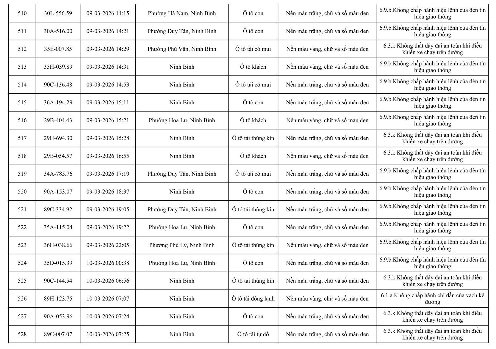 Danh sách phương tiện vi phạm giao thông được phát hiện qua hệ thống giám sát và thiết bị nghiệp vụ từ ngày 1-10/3/2026
