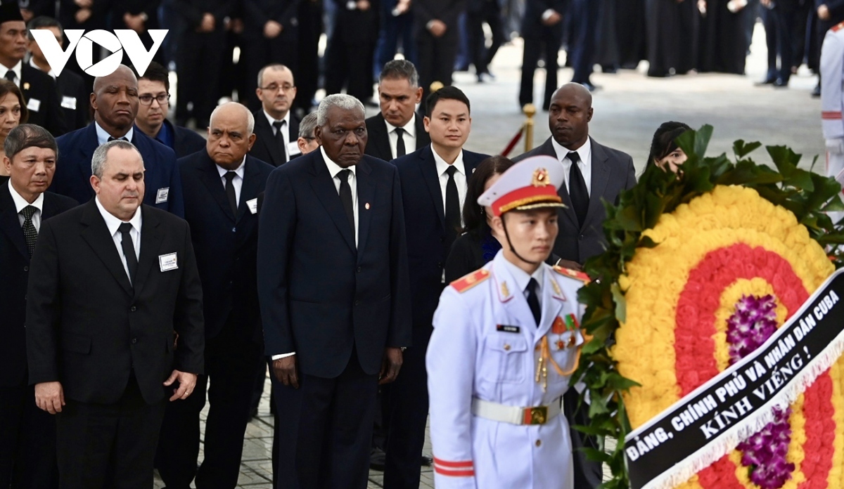 | Đoàn Cộng hòa Cuba do ông Esteban Lazo Hernandez, Ủy viên Bộ Chính trị, Chủ tịch Quốc hội Chính quyền nhân dân Cuba làm Trưởng đoàn vào viếng Tổng Bí thư Nguyễn Phú Trọng tại Hà Nội. |