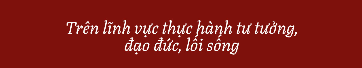 4. Trên lĩnh vực thực hành tư tưởng, đạo đức, lối sống, Tổng Bí thư Nguyễn Phú Trọng là tấm gương tiêu biểu, sáng ngời về tự học, tự rèn luyện, tự soi, tự sửa và nêu gương trên các lĩnh vực công tác Đảng, nhất là trong học tập, làm theo và nêu gương thực hành đạo đức cách mạng, học tập và làm theo tư tưởng, đạo đức, phong cách Hồ Chí Minh, đấu tranh tự phê bình và phê bình, đấu tranh ngăn chặn, đẩy lùi sự suy thoái về tư tưởng chính trị, đạo đức, lối sống, “tự diễn biến”, “tự chuyển hóa” trong nội bộ; đấu tranh phòng, chống tham nhũng, tiêu cực.