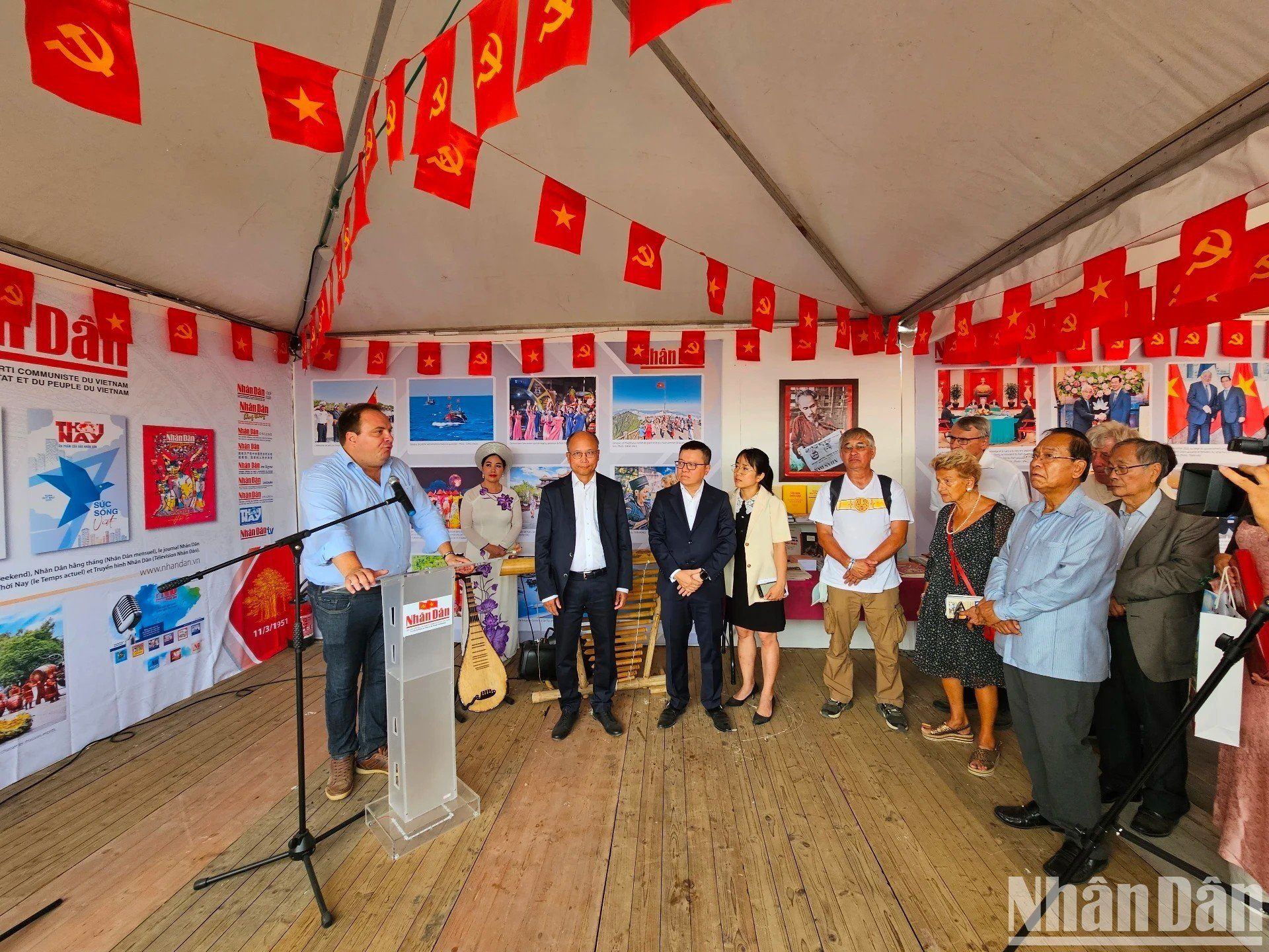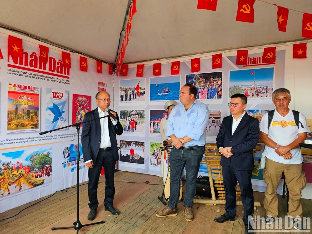 | Đại sứ Việt Nam tại Pháp Đinh Toàn Thắng nhấn mạnh ý nghĩa của các hoạt động tại gian trưng bày do Báo Nhân Dân tổ chức, góp phần quảng bá Việt Nam và tăng cường giao lưu với bạn bè quốc tế. |