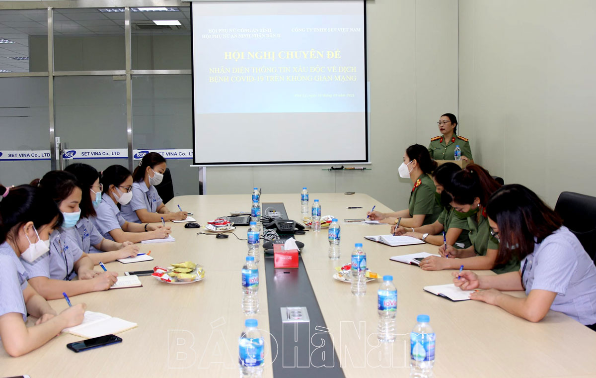 Phối hợp tổ chức Hội nghị tuyên truyền, tập huấn cho hơn 1.000 cán bộ, đảng viên, lãnh đạo Hội liên hiệp phụ nữ cấp cơ sở, cấp ủy cơ sở nhận diện thông tin xấu độc chống Đảng, Nhà nước, thông tin sai sự thật; kỹ năng biên tập tin bài định hướng dư luận và đấu tranh phản bác các quan điểm sai trái thù địch; tuyên truyền các quy định của pháp luật nhằm bảo đảm an ninh, an toàn trên không gian mạng... Qua đó giúp cán bộ, đảng viên, hội viên nắm vững chủ trương, đường lối của Đảng, pháp luật của Nhà nước về an ninh mạng, từ đó nâng cao nhận thức, tinh thần cảnh giác và kỹ năng xử lý trước các luận điệu xuyên tạc, thông tin xấu độc của các đối tượng chống đối chính trị, phản động trên không gian mạng.