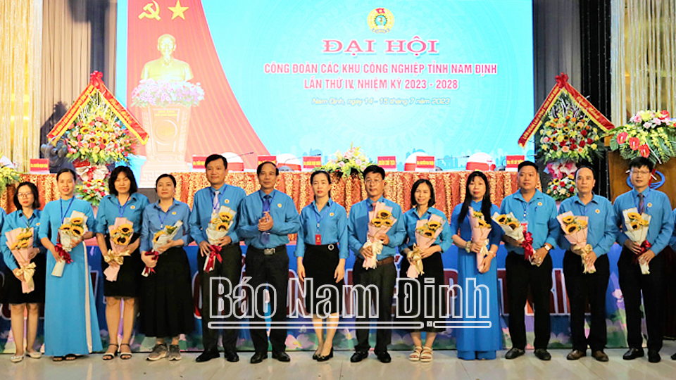 | Lãnh đạo LĐLĐ tỉnh, các KCN tỉnh chúc mừng Ban Chấp hành Công đoàn các KCN tỉnh, nhiệm kỳ 2023-2028. |
