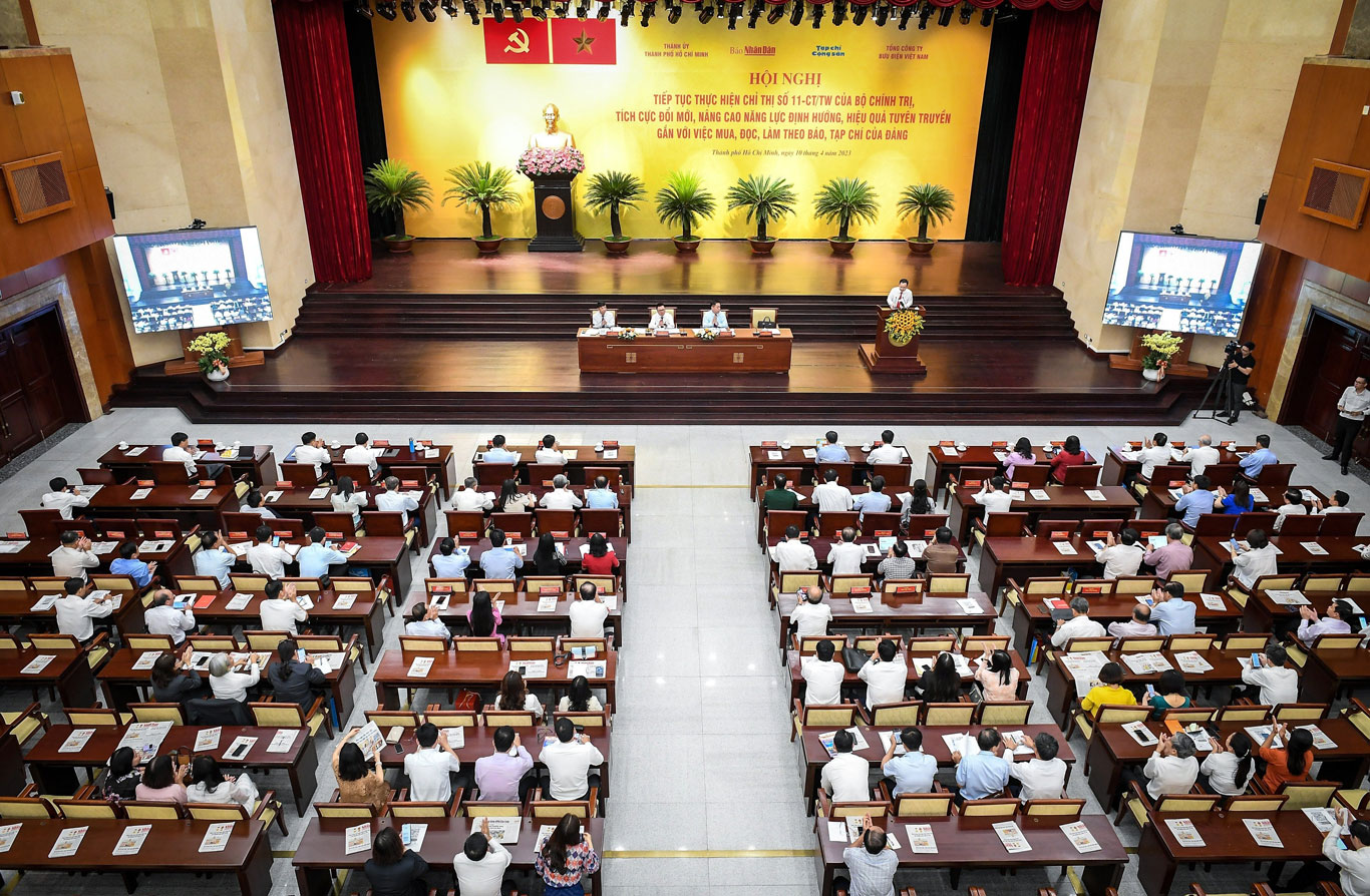 Ngày 10/4, Báo Nhân Dân, Tạp chí Cộng sản, Thành ủy Thành phố Hồ Chí Minh, Tổng Công ty Bưu điện Việt Nam phối hợp tổ chức hội nghị tiếp tục thực hiện Chỉ thị số 11 của Bộ Chính trị, tích cực đổi mới, nâng cao năng lực định hướng, hiệu quả tuyên truyền gắn với việc mua, đọc và làm theo báo, tạp chí của Đảng.