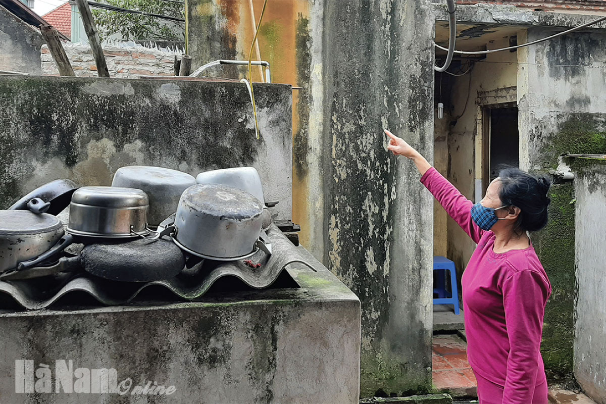 Gia đình bà Vũ Thị Vĩnh ở Tổ dân phố Ngọc Thị, phường Duy Minh (thị xã Duy Tiên) vẫn phải dùng nước giếng khoan để sinh hoạt.