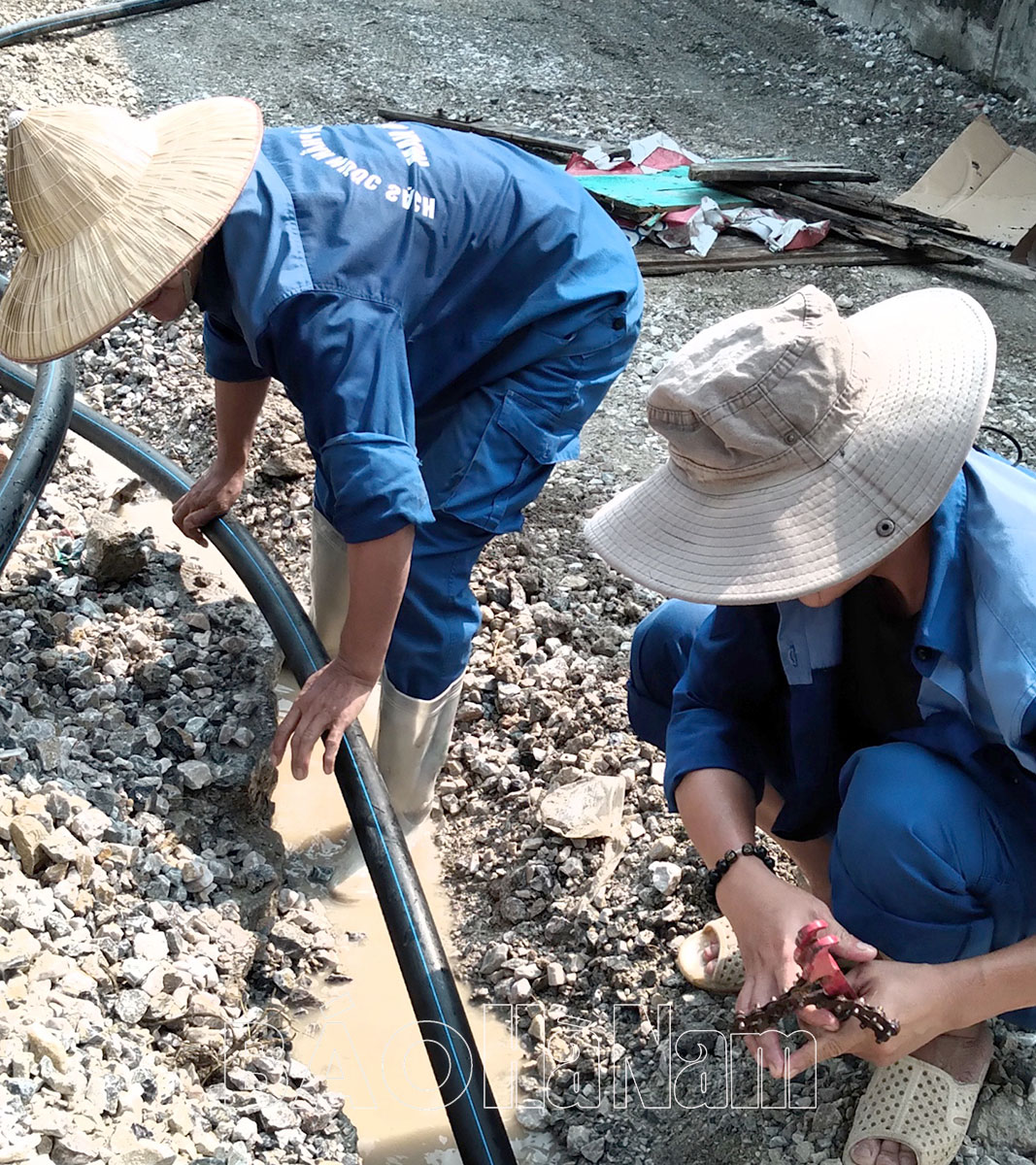 Công nhân Công ty cổ phần nước sạch Hà Nam nâng cấp hệ thống đường ống nước tại Tổ dân phố An Nhân, phường Hoàng Đông (Duy Tiên).