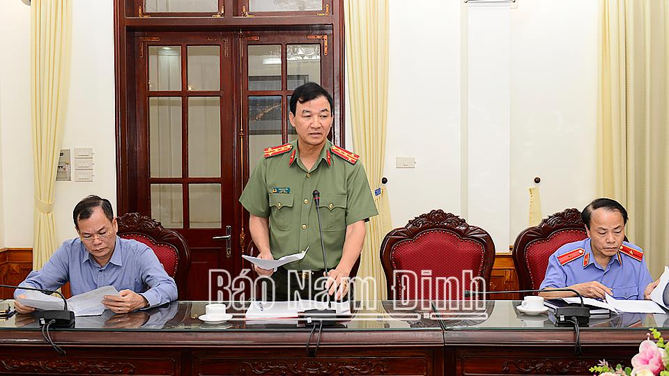 Tại hội nghị, Thường trực Ban Chỉ đạo đã nghe các cơ quan bảo vệ pháp luật của tỉnh báo cáo tình hình, kết quả cũng như những khó khăn, vướng mắc trong quá trình xử lý đối với hai vụ án thuộc diện Ban Chỉ đạo theo dõi, chỉ đạo gồm: Vụ án “Vi phạm quy định về đấu thầu gây hậu quả nghiêm trọng”; “Tham ô tài sản” xảy ra tại Trung tâm Kiểm soát bệnh tật Nam Định (CDC Nam Định) và vụ án “Làm giả tài liệu của cơ quan, tổ chức”; “Trốn thuế”; “Vi phạm các quy định về sử dụng đất đai”; “Chiếm đoạt, mua bán, tiêu hủy con dấu, tài liệu của cơ quan, tổ chức”; “Tham ô tài sản” xảy ra tại Công ty Cổ phần Dịch vụ tang lễ Hoàng Long. Thường trực Ban Chỉ đạo cũng nghe các thành viên đóng góp ý kiến vào các vụ án, vụ việc liên quan và triển khai một số nhiệm vụ trọng tâm trong thời gian tới.