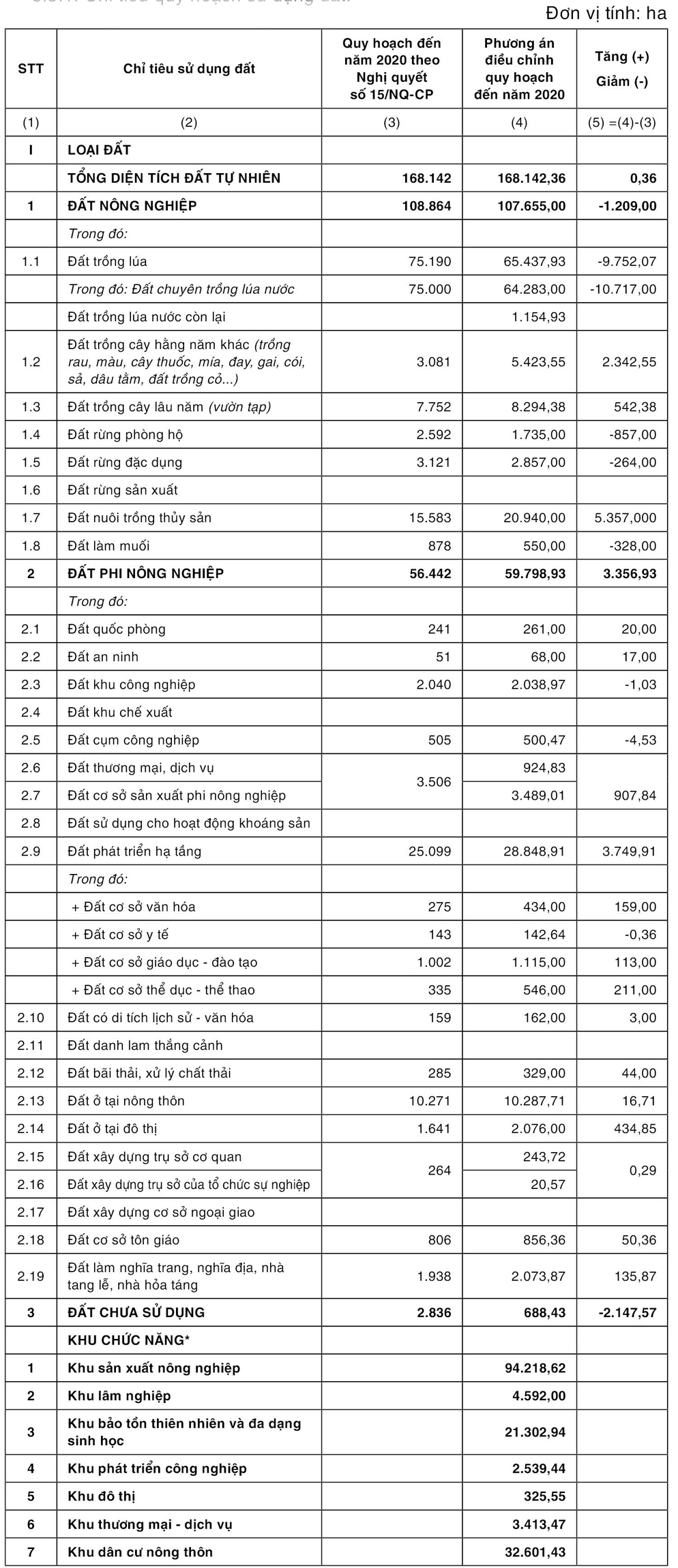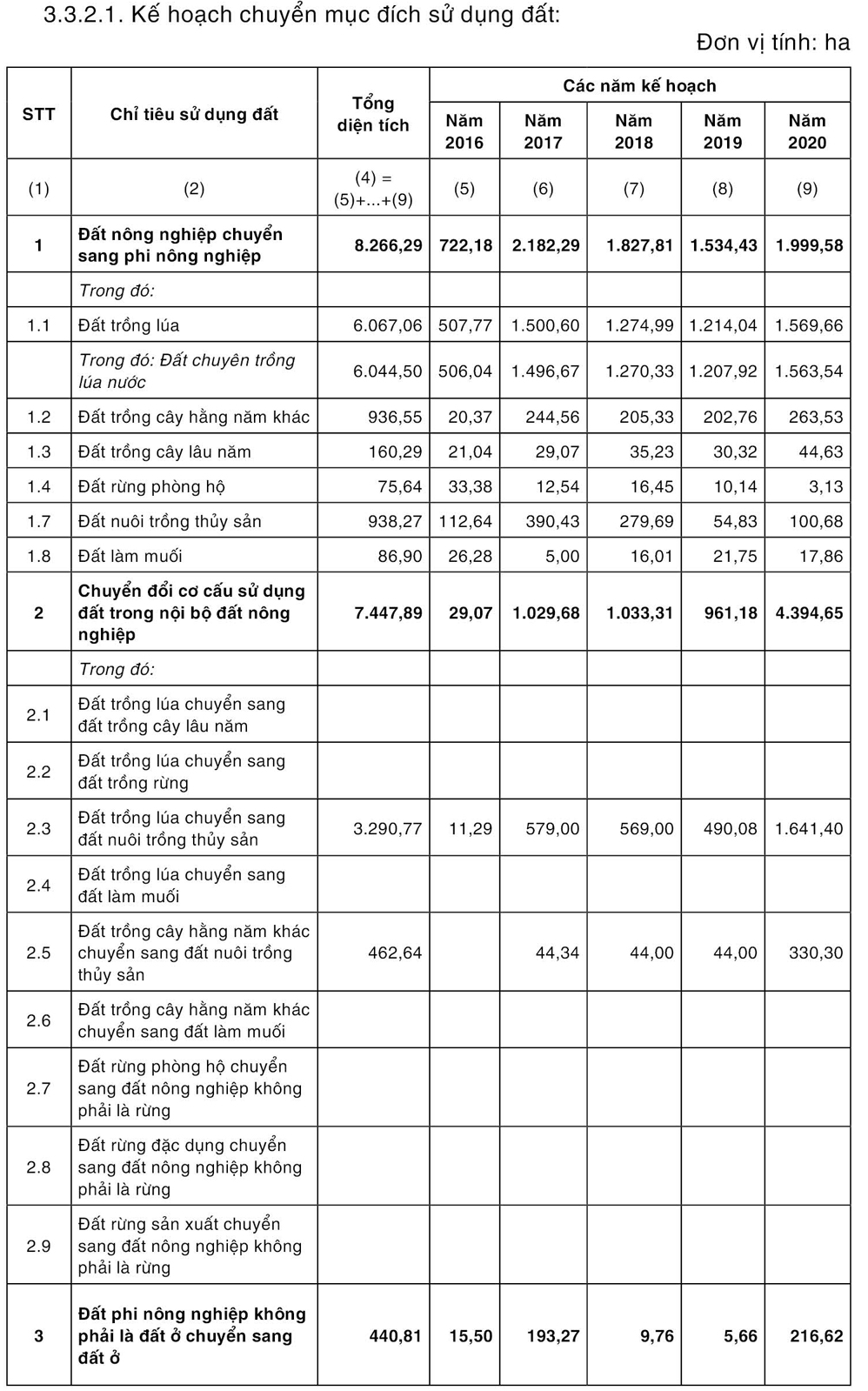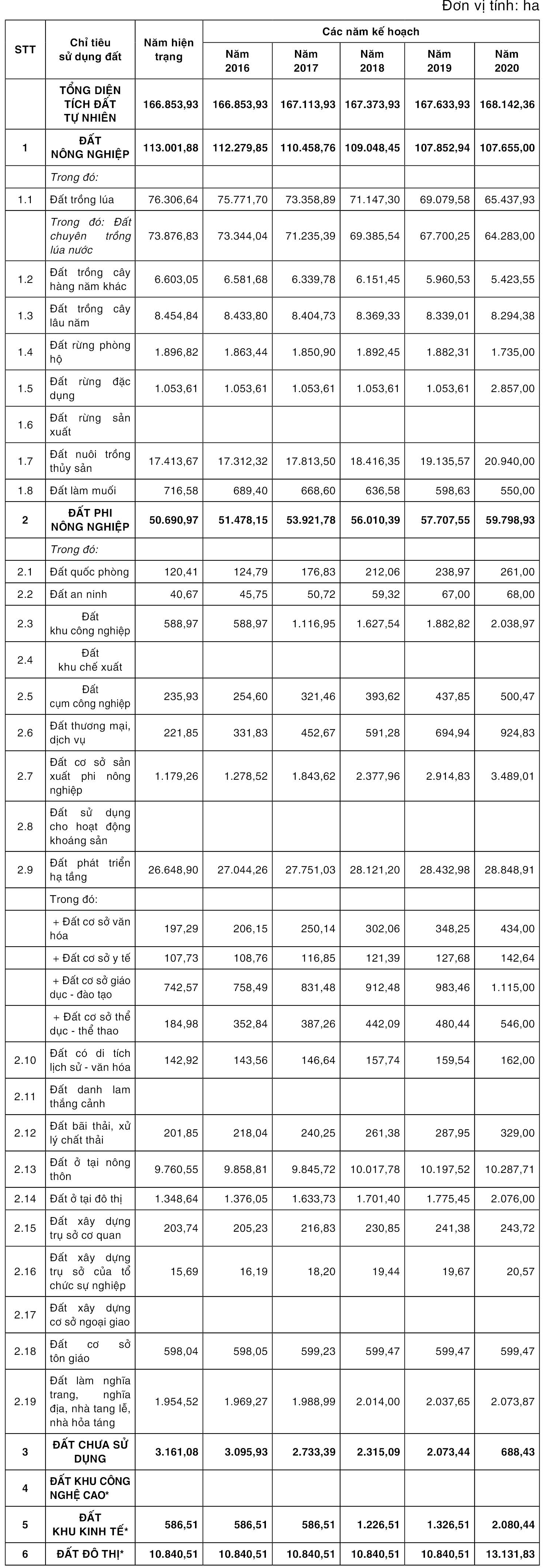 3.3.1. Chỉ tiêu quy hoạch sử dụng đất.