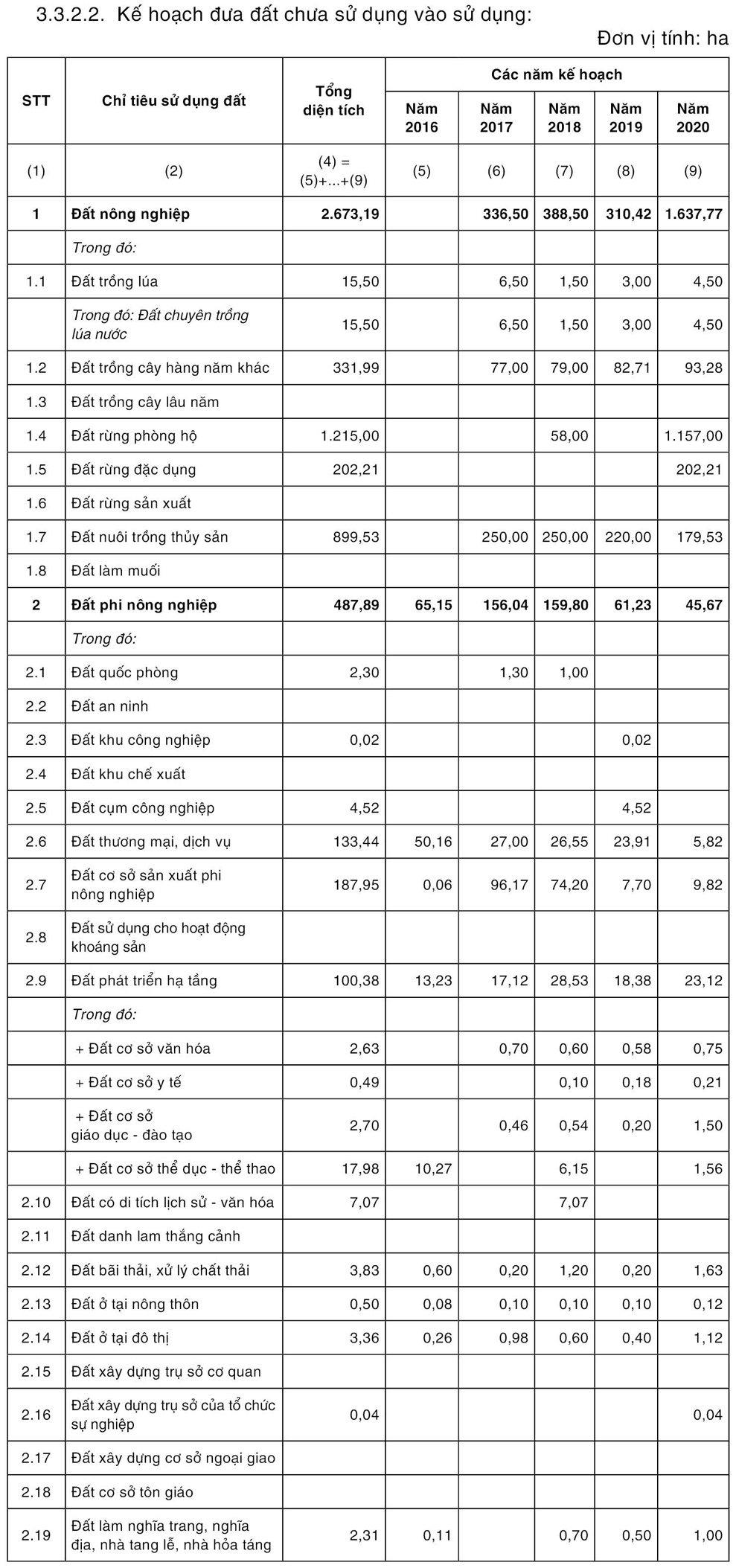 3.3. Một số chỉ tiêu quy hoạch, kế hoạch sử dụng đất.