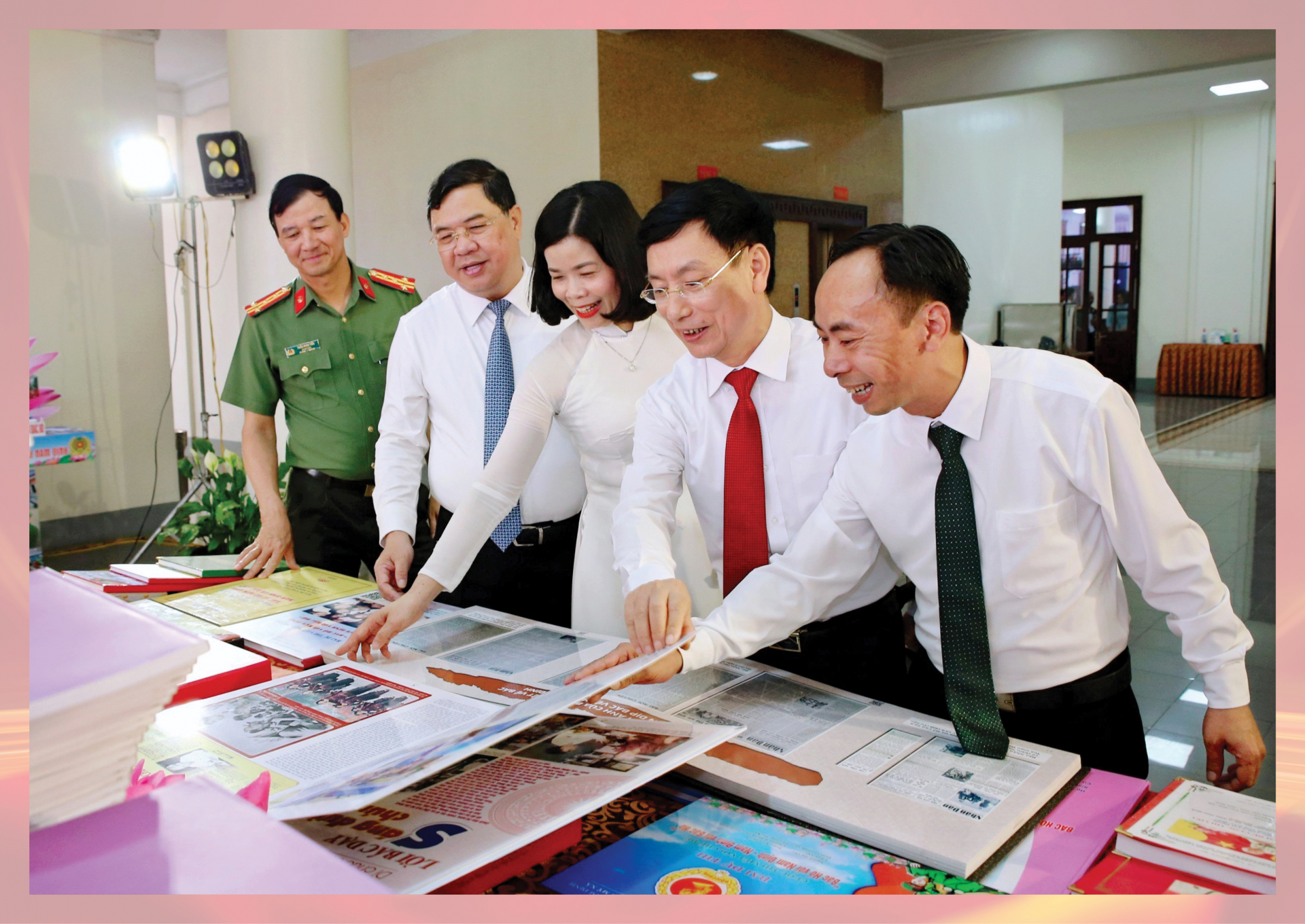 | Các đồng chí lãnh đạo tỉnh tham quan trưng bày các tác phẩm tham dự Cuộc thi viết “Bác Hồ với Nam Định, Nam Định với Bác Hồ”. |