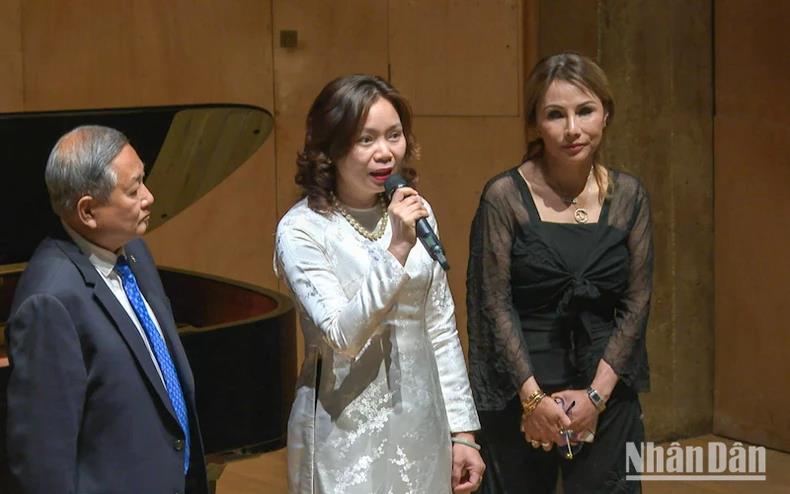 Phát biểu tại đêm nhạc, Tham tán Công sứ Phạm Thị Kim Yến bày tỏ sự xúc động trước nghĩa cử cao đẹp của Hội “Những người tài năng vì trẻ mồ côi Việt Nam” dành cho những trường hợp có hoàn cảnh đặc biệt tại Việt Nam.