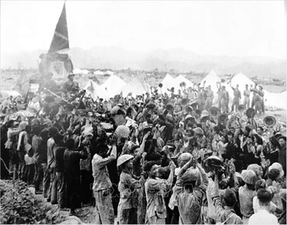Chiều 7/5/1954, lá cờ "Quyết chiến-Quyết thắng" của Quân đội nhân dân Việt Nam tung bay trên nóc hầm tướng De Castries. Chiến dịch lịch sử Điện Biên Phủ đã toàn thắng. Ảnh tư liệu/TTXVN