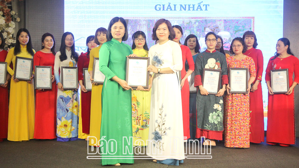 | Hội LHPN tỉnh trao giải Nhất cuộc thi Ảnh trực tuyến “Áo dài Việt – Khoảnh khắc đẹp bên gia đình” cho chị Đặng Lệ Thúy, Bộ CHQS tỉnh Nam Định. |
