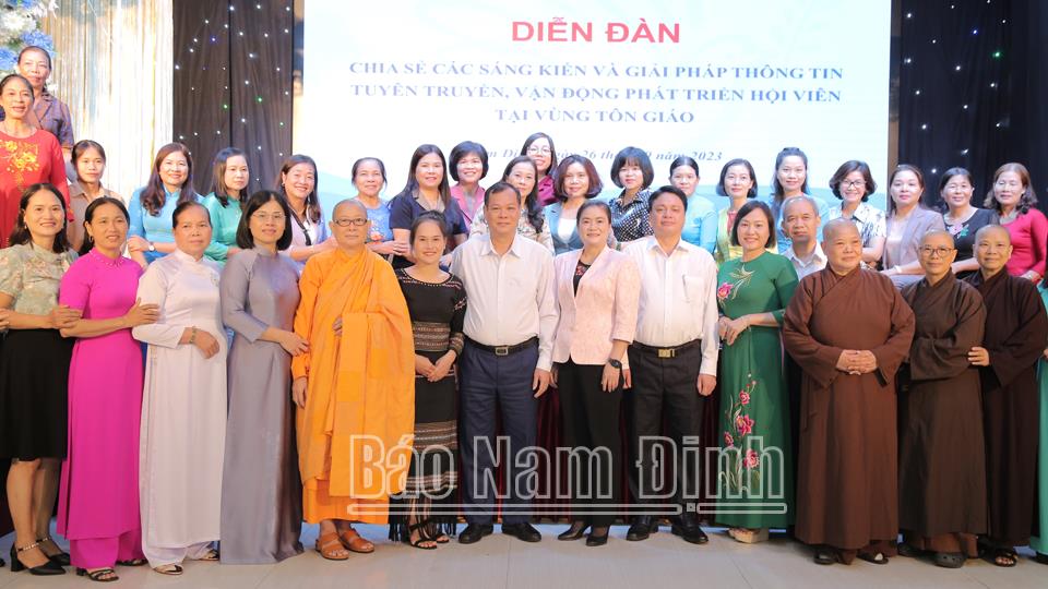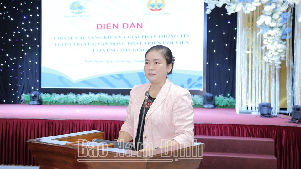 Ngày 26-9, tại thành phố Nam Định, Trung ương Hội LHPN Việt Nam phối hợp Hội Liên hiệp Phụ nữ (LHPN) tỉnh tổ chức Diễn đàn “Chia sẻ, vận động nhân rộng các sáng kiến và giải pháp thông tin tuyên truyền, vận động phát triển hội viên tại vùng giáo” theo hình thức trực tiếp và trực tuyến đến 21 điểm cầu trong cả nước.