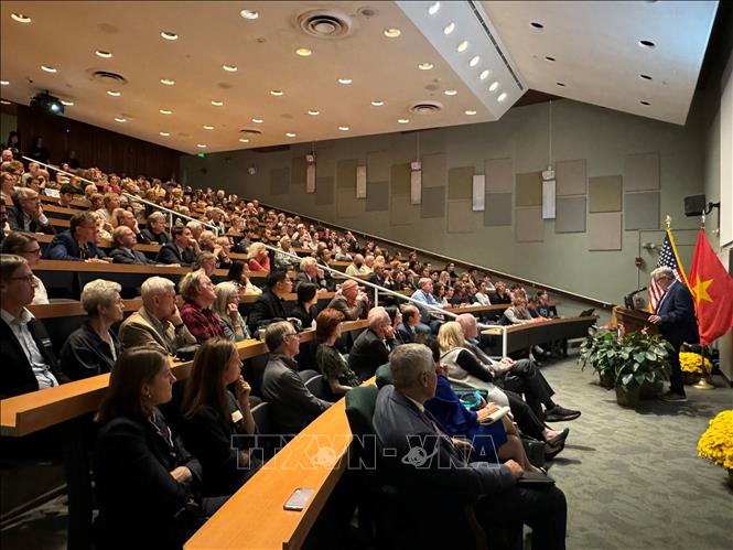 Theo phóng viên TTXVN tại Washington, nhận lời mời của Thượng nghị sĩ Patrick Leahy, nguyên Chủ tịch thường trực, Chủ tịch Ủy ban Chuẩn chi Thượng viện Mỹ, trong các ngày 1-2/10, Đại sứ Việt Nam tại Mỹ Nguyễn Quốc Dũng đã tới thăm và làm việc tại bang Vermont, kết hợp tham dự Diễn đàn Chính sách công Leahy 2024 “Chiến tranh Mỹ tại Việt Nam: 50 năm nhìn lại”, do Đại học Vermont tổ chức tại thành phố Burlington.