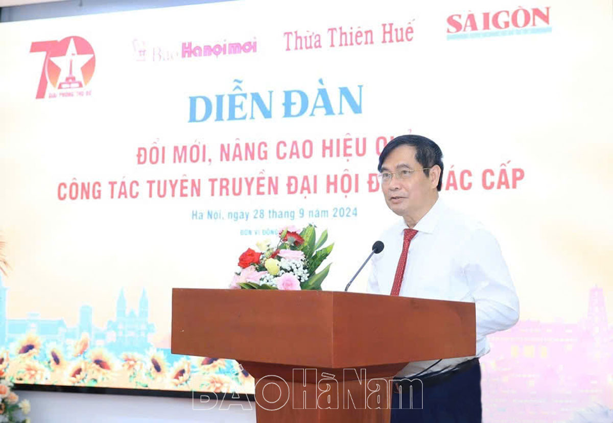 Sáng 28/9, Báo Hànộimới, Báo Thừa Thiên Huế và Báo Sài Gòn Giải phóng phối hợp tổ chức Diễn đàn “Đổi mới, nâng cao hiệu quả công tác tuyên truyền đại hội đảng các cấp”. Dự diễn đàn có đồng chí Phan Xuân Thủy, Phó Trưởng ban Tuyên giáo Trung ương; lãnh đạo các báo Đảng khu vực đồng bằng sông Hồng, các cơ quan báo chí của thành phố Hà Nội...