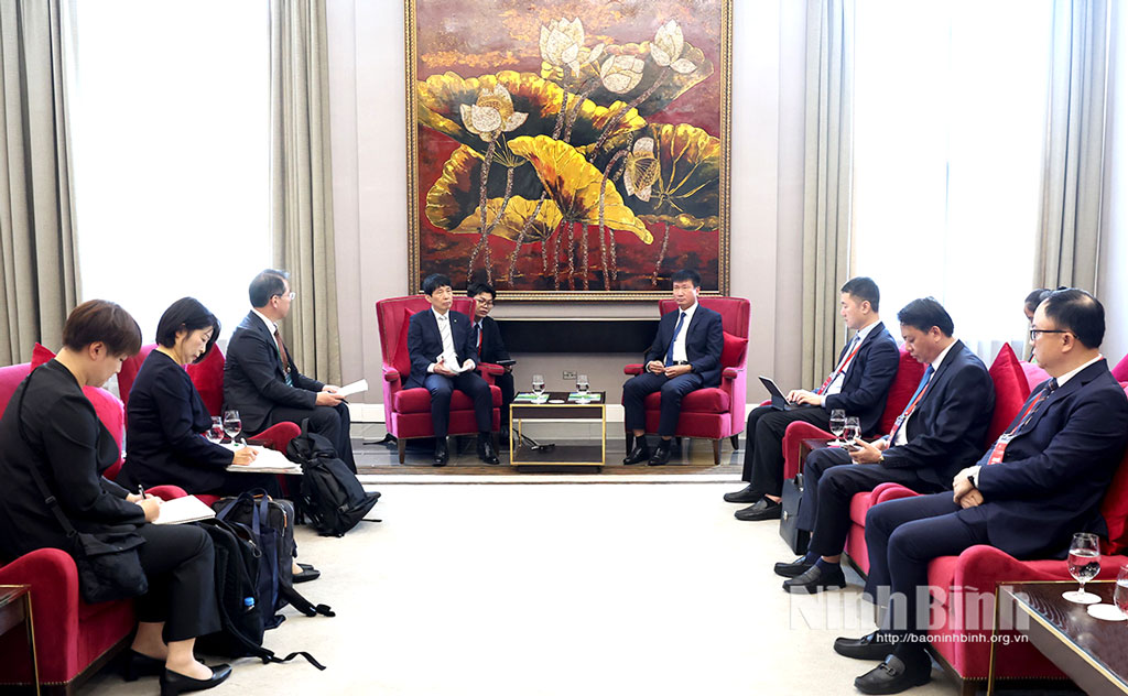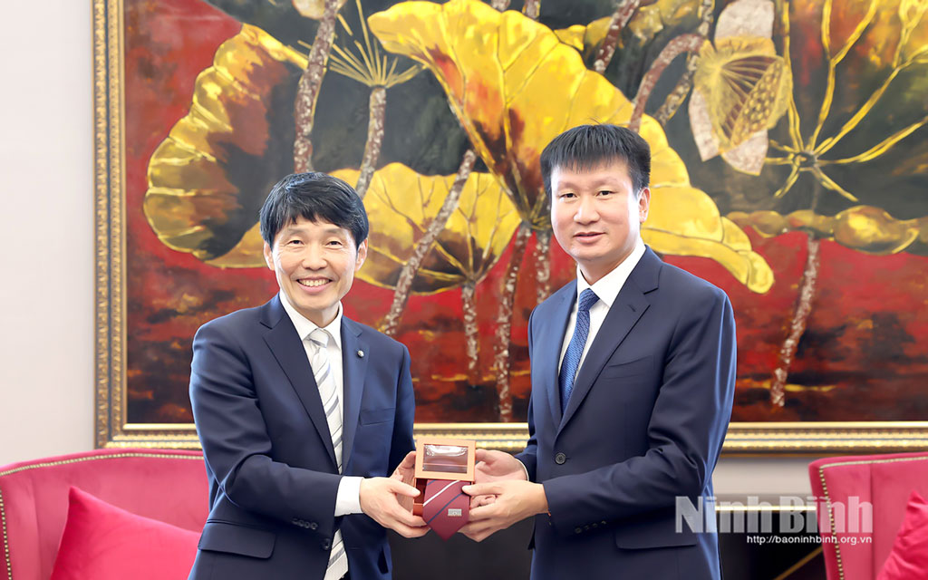 Tại buổi làm việc, đồng chí Chủ tịch UBND tỉnh đã giới thiệu, thông tin khái quát với ngài Ymamoto Ichita về tình hình phát triển kinh tế - xã hội của tỉnh sau hợp nhất, đặc biệt là những mong muốn thúc đẩy quan hệ hợp tác với đối tác, các địa phương của Nhật Bản. Đồng thời khẳng định, tỉnh Ninh Bình có nhiều tiềm năng, điểm tương đồng trong định hướng phát triển kinh tế xanh, phát triển du lịch, giáo dục, đào tạo nguồn nhân lực chất lượng và tiềm năng hợp tác phát triển bền vững với các địa phương của Nhật Bản.