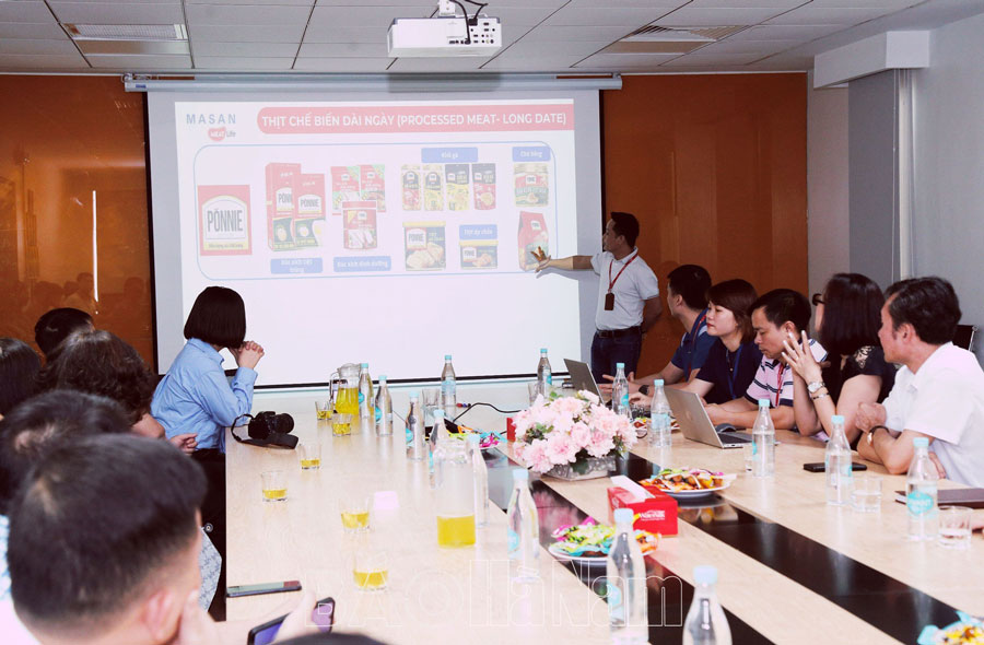 Cán bộ Công ty cổ phần Masan giới thiệu quy trình chế biến thực phẩm.