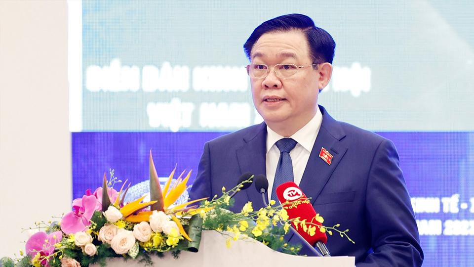 | Chủ tịch Quốc hội, GS.TS Vương Đình Huệ phát biểu khai mạc Diễn đàn Kinh tế - Xã hội Việt Nam 2023. |