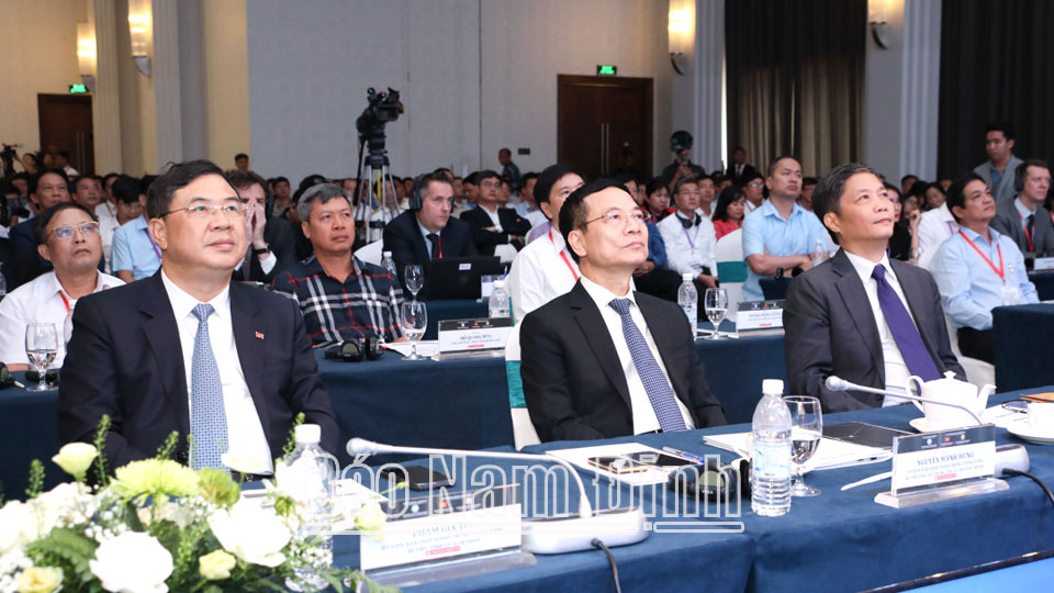 Các đồng chí: Trần Tuấn Anh, Uỷ viên Bộ Chính trị, Trưởng Ban Kinh tế Trung ương; Nguyễn Mạnh Hùng, Uỷ viên BCH Trung ương Đảng, Bộ trưởng Bộ TT và TT; Phạm Gia Túc, Uỷ viên BCH Trung ương Đảng, Bí thư Tỉnh ủy Nam Định đồng chủ trì Diễn đàn.