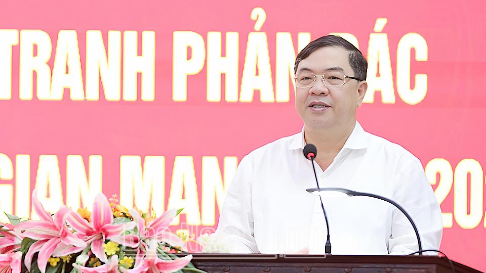 | Đồng chí Phó Bí thư Thường trực Tỉnh ủy, Trưởng Ban Chỉ đạo 35 Tỉnh uỷ Lê Quốc Chỉnh phát biểu chỉ đạo tại hội nghị triển khai biện pháp ngăn chặn, đấu tranh với các thông tin xấu, độc trên không gian mạng. |