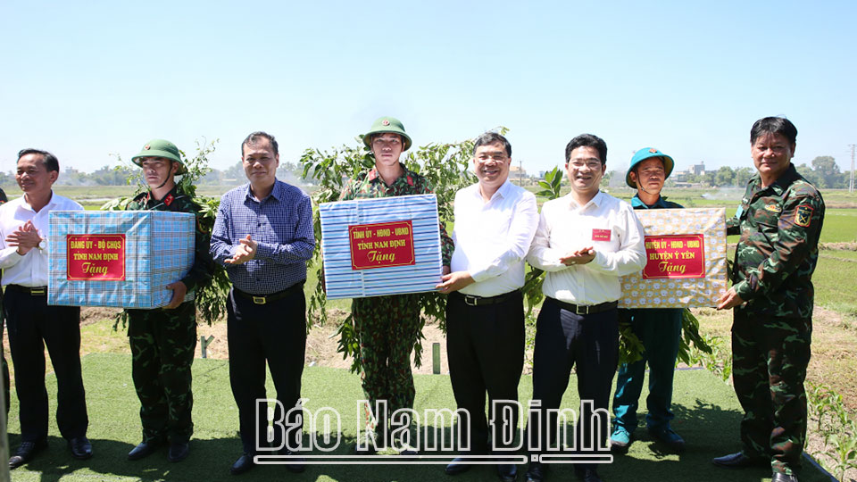 | Các đồng chí: Phạm Gia Túc, Ủy viên BCH Trung ương Đảng, Bí thư Tỉnh ủy, Bí thư Đảng ủy Quân sự tỉnh; Lê Quốc Chỉnh, Phó Bí thư Thường trực Tỉnh ủy, Chủ tịch HĐND tỉnh, Trưởng đoàn Đoàn đại biểu Quốc hội tỉnh và các đại biểu dự, tham quan cuộc diễn tập KVPT huyện Ý Yên. |