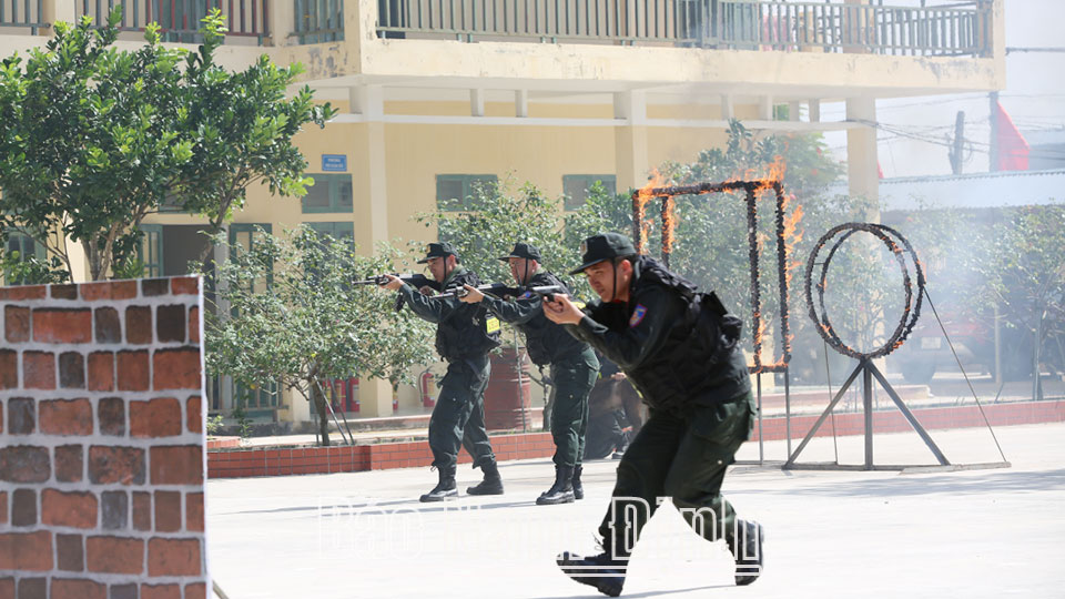 | Diễn tập xử trí tình huống A2 của Lực lượng Công an huyện Nam Trực trong diễn tập KVPT huyện năm 2023. |